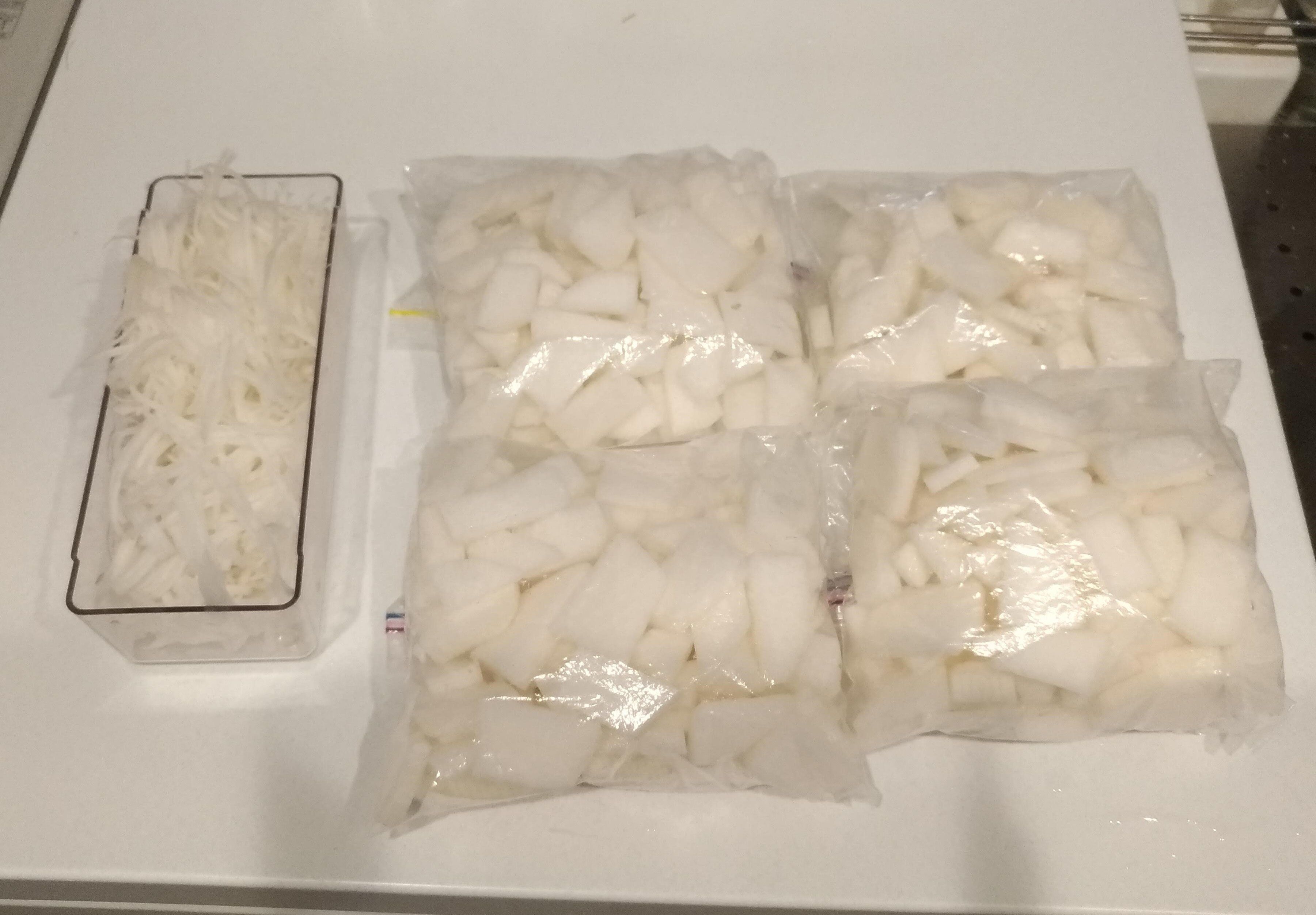 大根を購入した際は、皮はスライサーで千切りにします。千切りにすると、独特の食感や味わいが軽減され、食べやすくなりますよ!