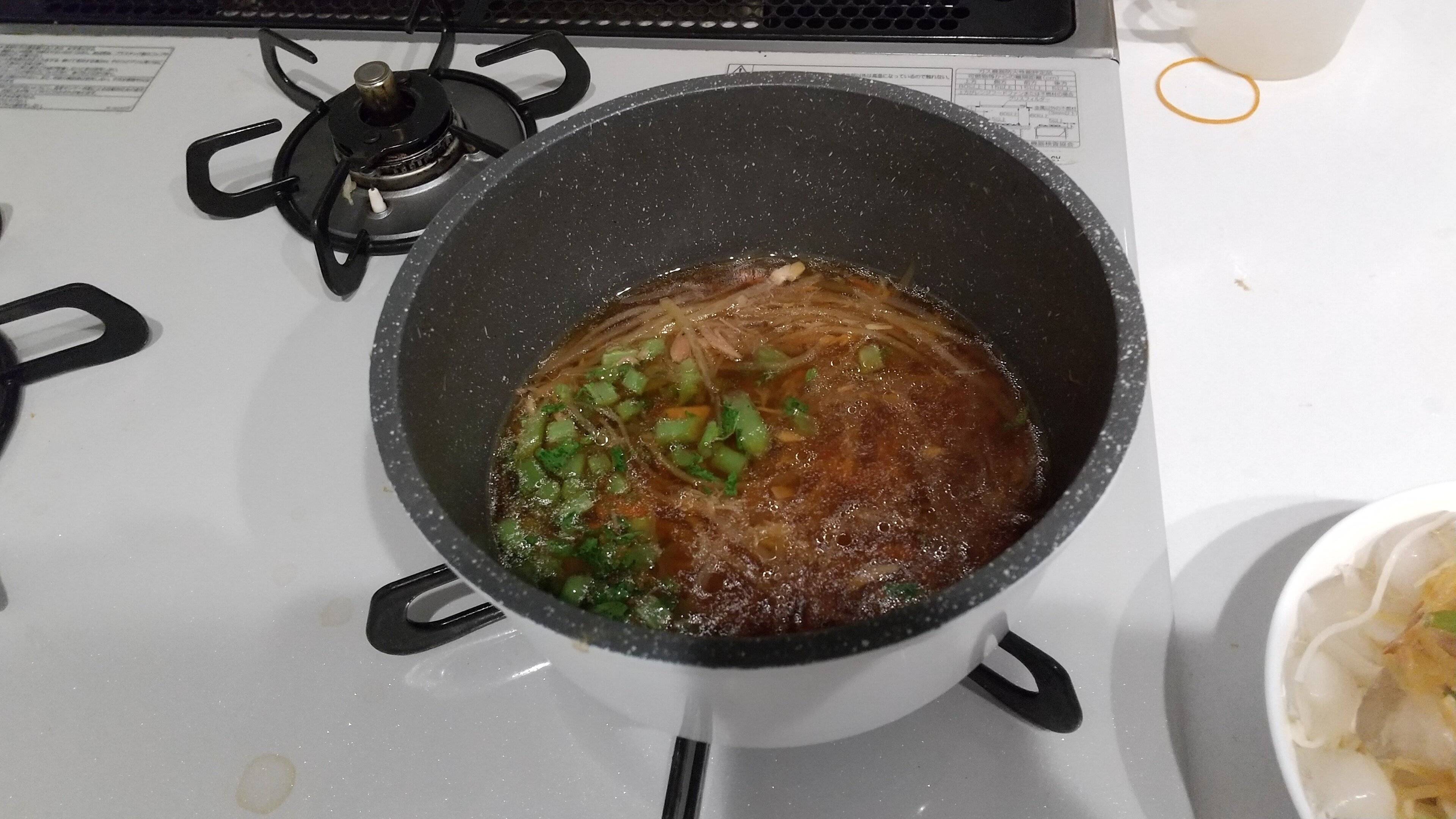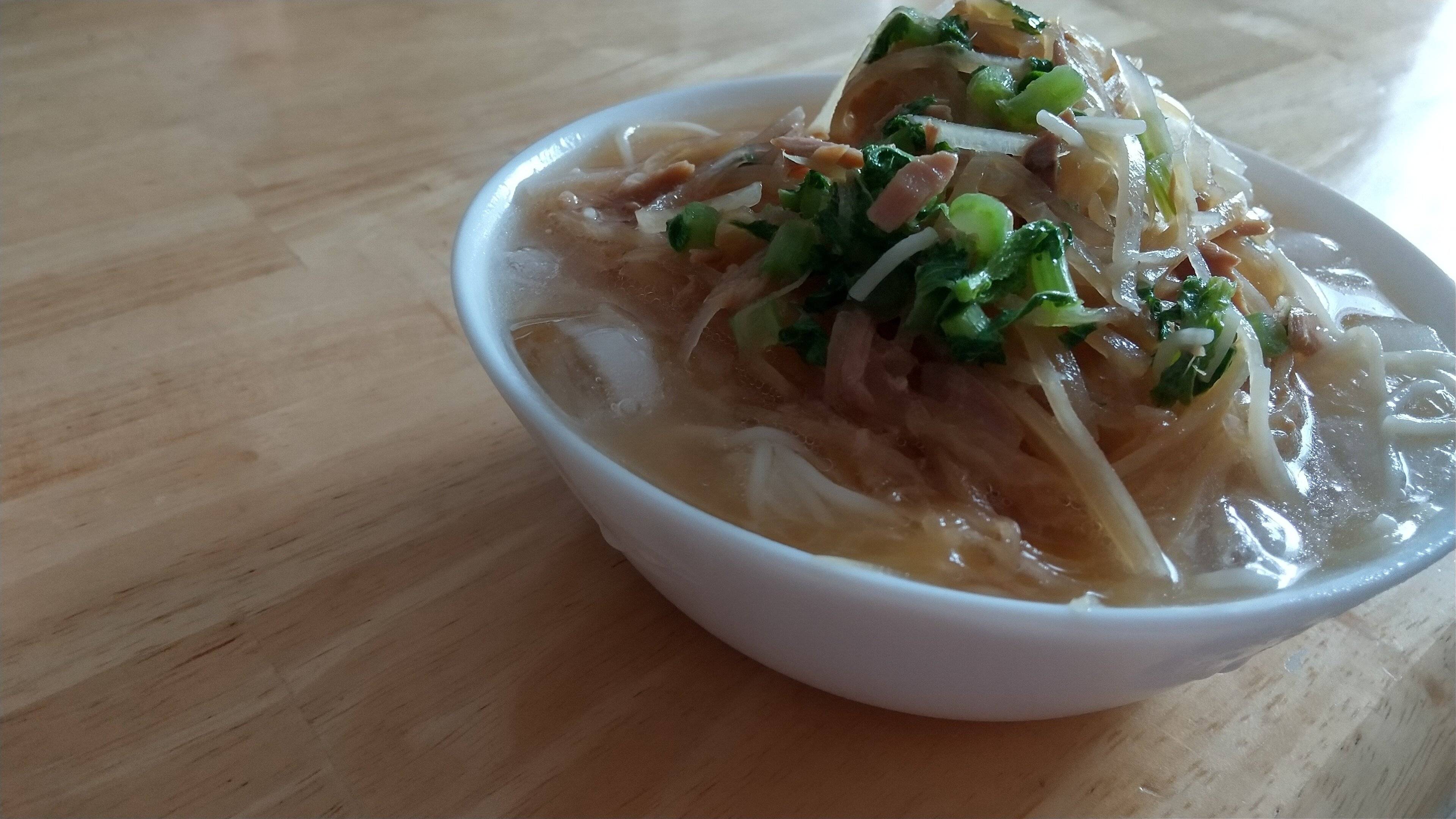 小鍋に少量の水で煮、ある程度火が通ったところでツナを加えます。味つけは、中華だしや、めんつゆなど、お好みで。