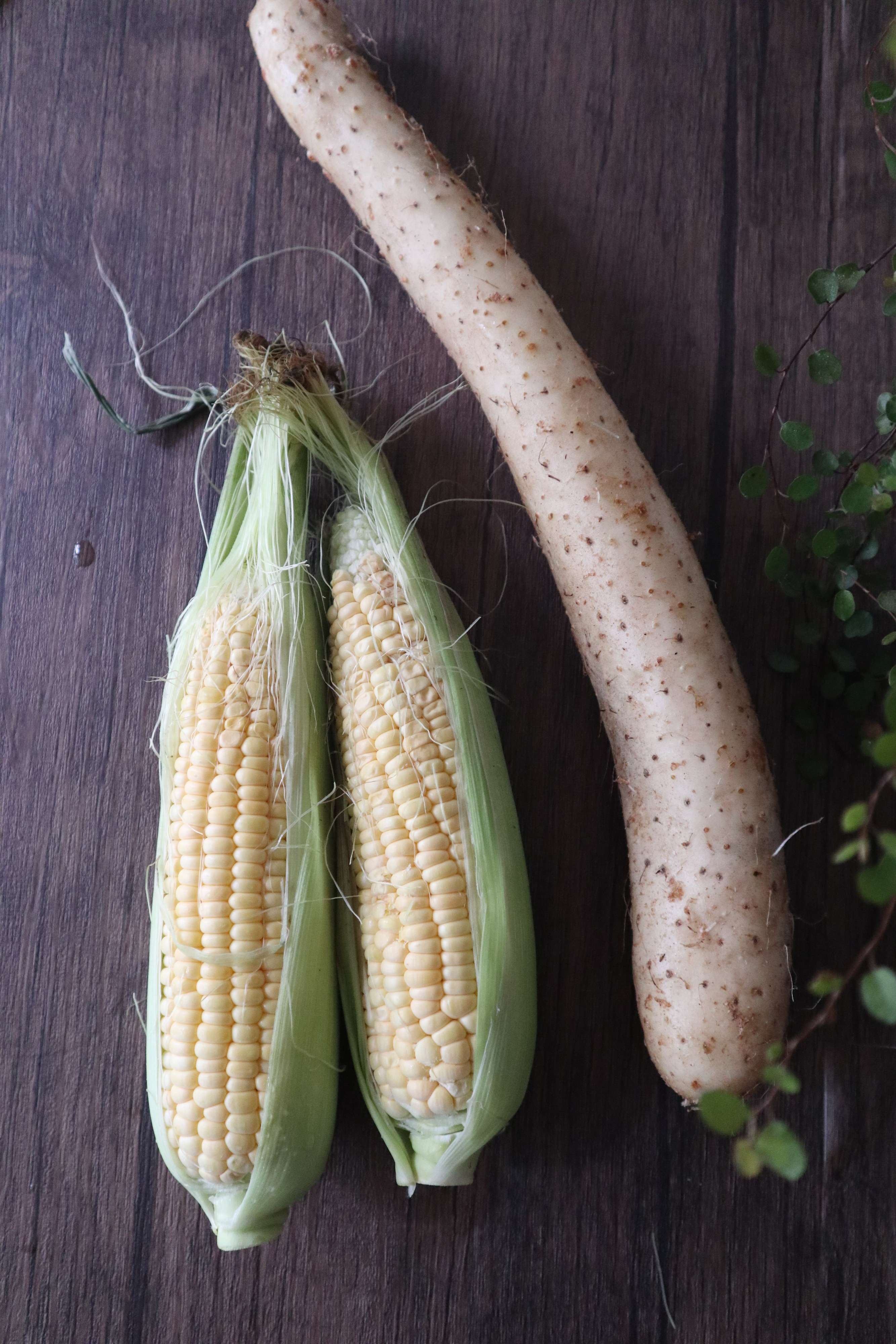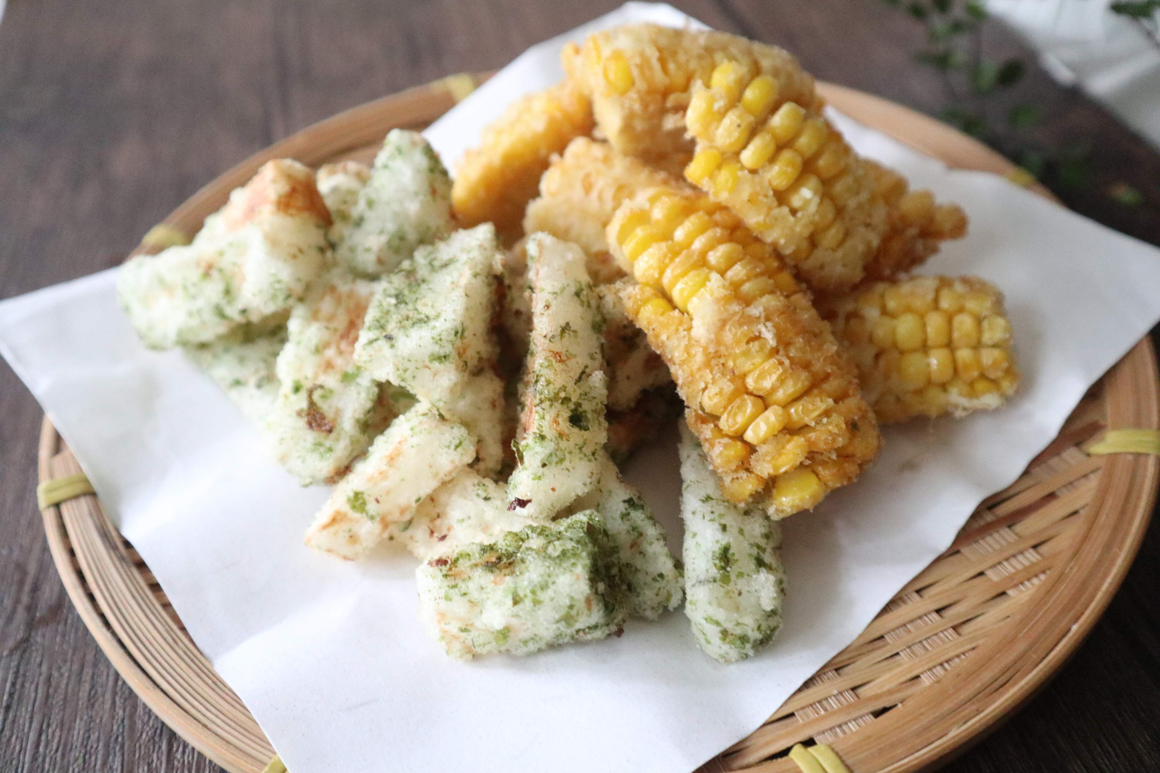 とうもろこしは揚げると甘みが増しますし、長芋は食感がホクホクになっておいしいです。