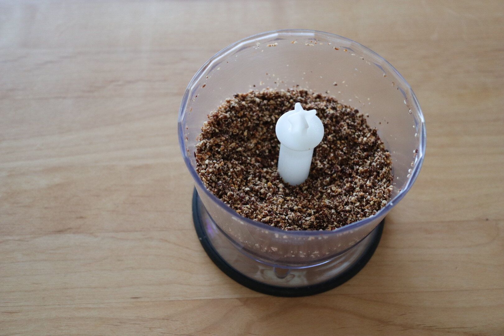 2. ココナッツオイル、メープルシロップを加えもう一度フードプロセッサーにかける