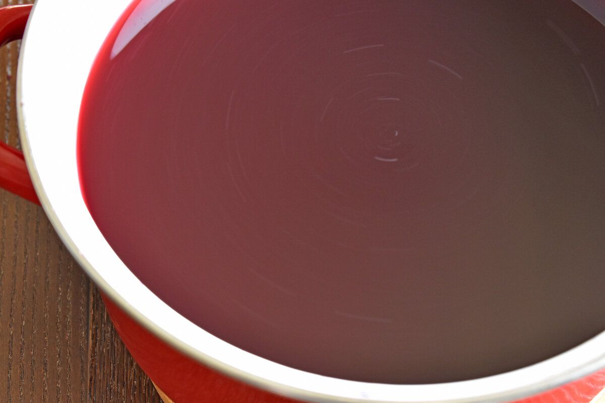 梅やほかのフルーツのシロップはしばらく漬け込む必要があるのですが、赤しそシロップはつくったその日、なんなら、作りたてを楽しめます。