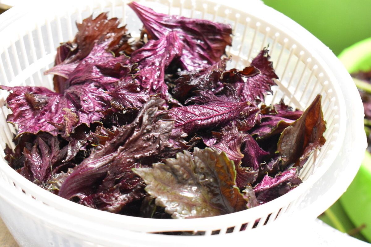 赤しそは産地により出回るタイミングが少しずれる傾向なので、梅漬けが終わったら、新鮮でいい状態の赤しそが手に入ったら準備をしましょう。