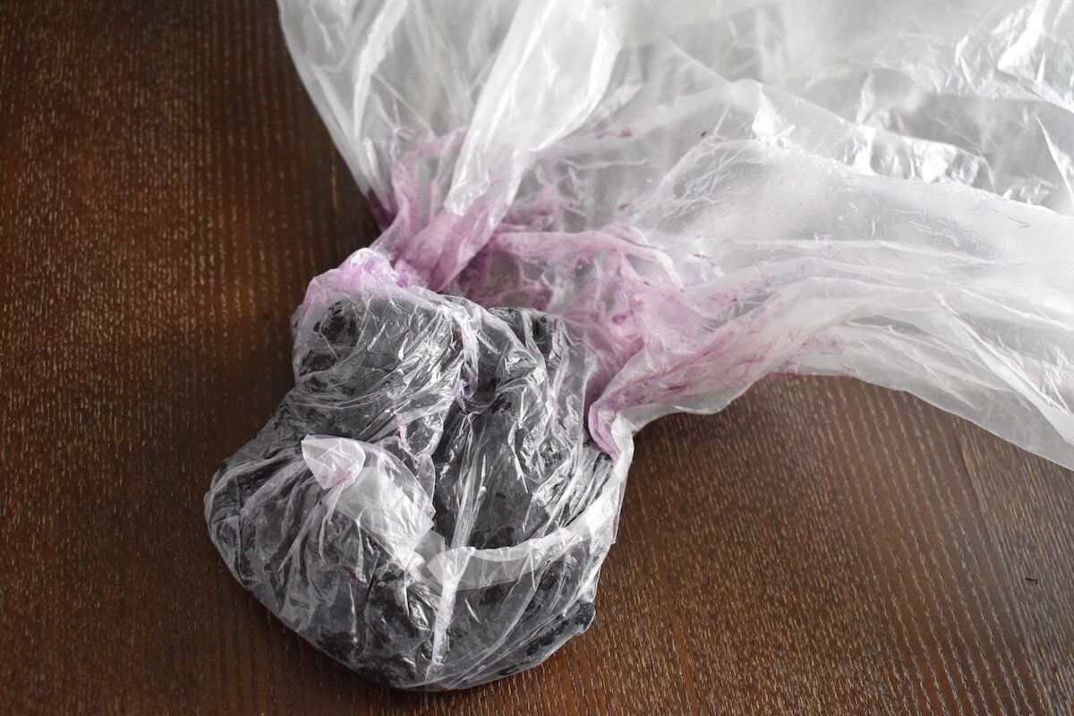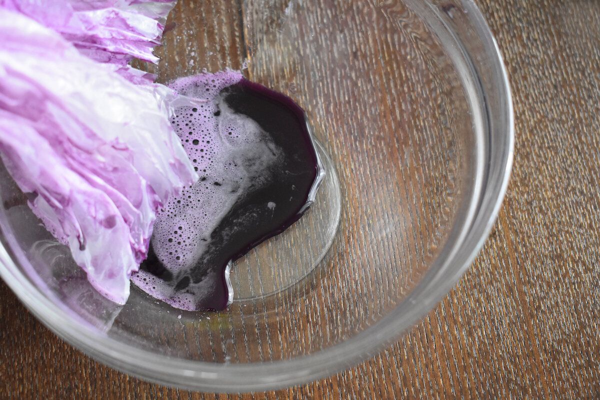 ● 写真でわかりやすくするためにボウルを使っていますが、清潔な密閉袋などに合わせて袋の上から揉み込みとすぐに発色します。