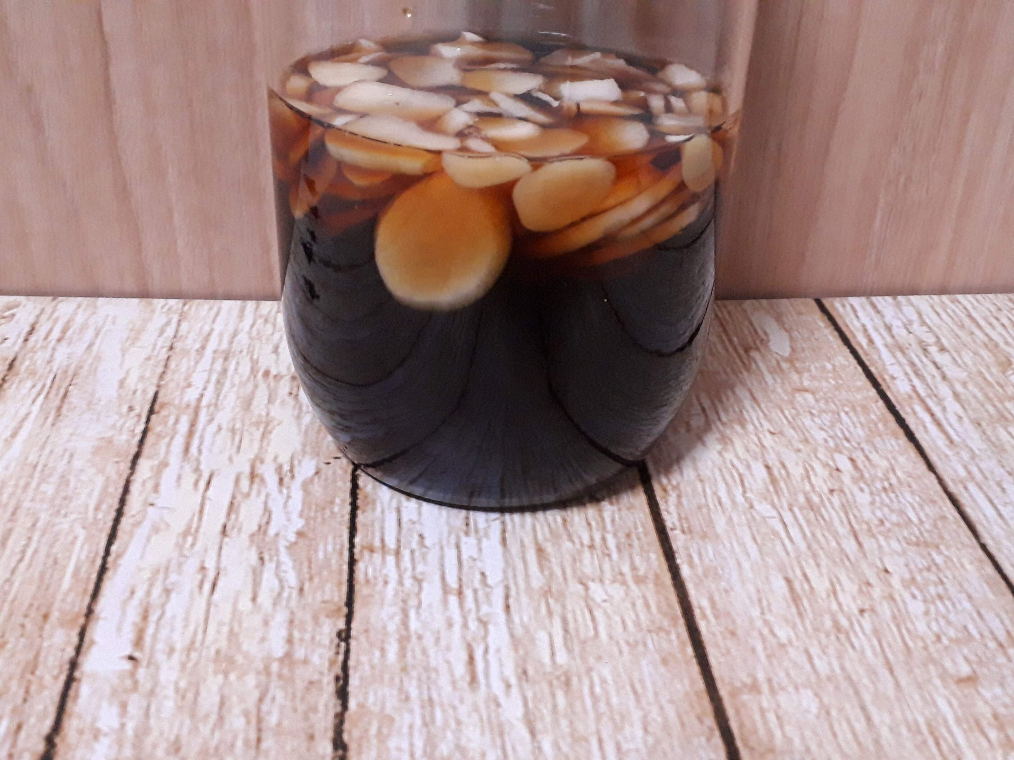 3.フタをして冷蔵庫に入れ一晩おいてできあがり。2~3日漬けおくと、にんにくの風味がタレにしっかり移り旨みがアップします。