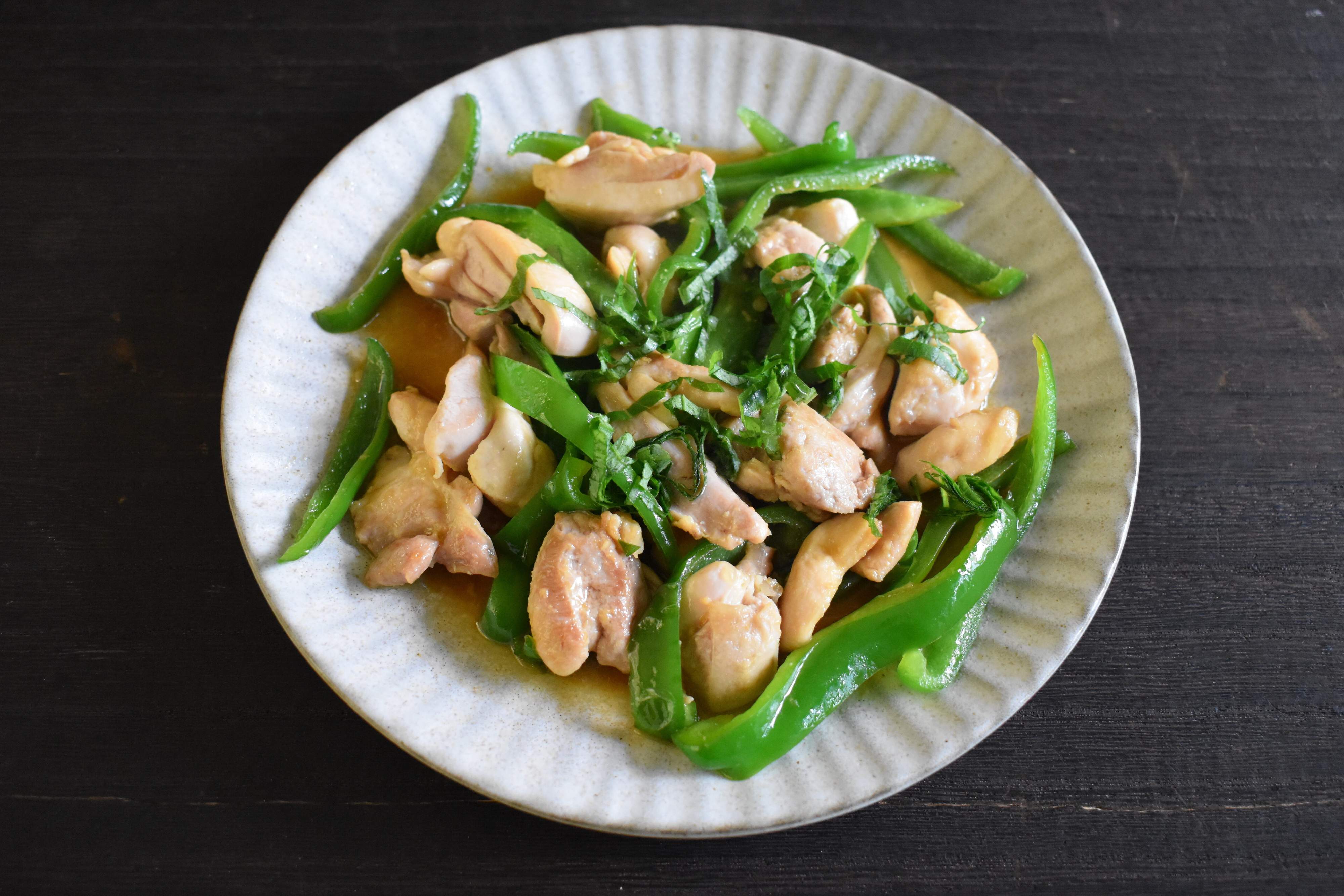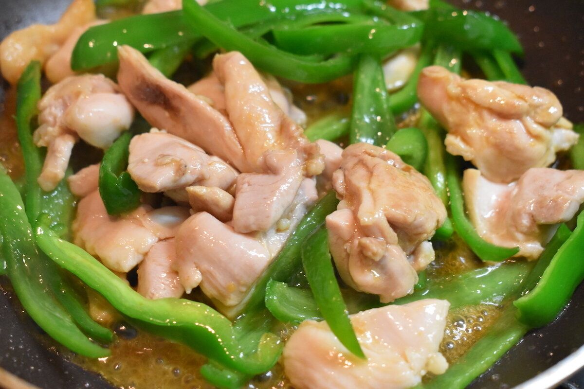 • 鶏とピーマンのガーリック醤油炒め