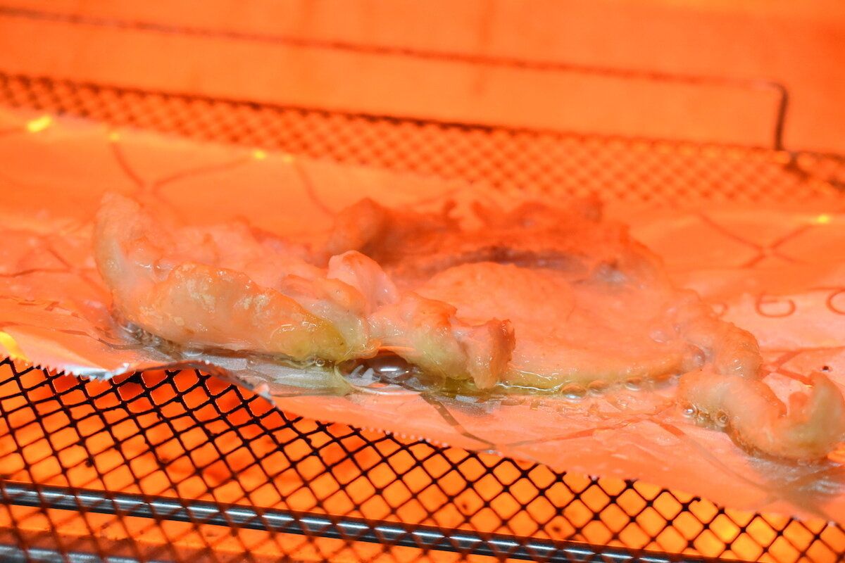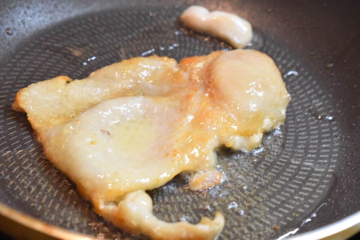 フライパンで油なしで加熱するだけで、じわじわと油が出てきます。