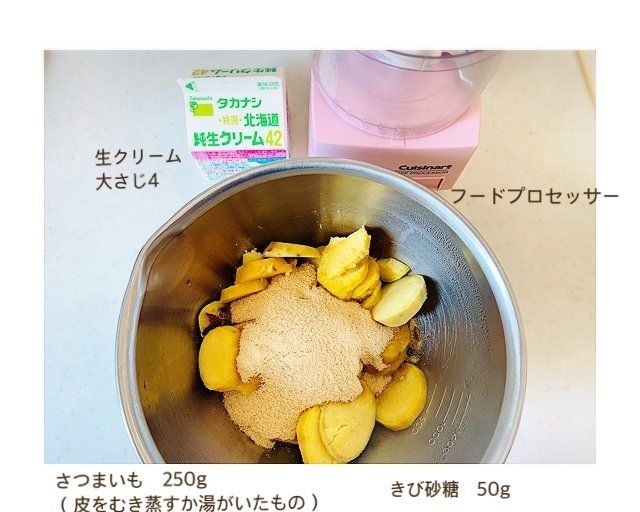 ・生クリーム 大さじ4 (さつまいもの水分量が多くベタつくようでしたら、生クリームの量を減らして下さい)