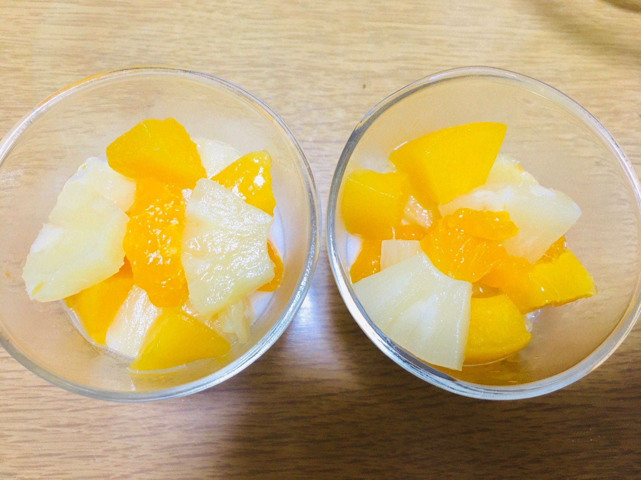 3.フルーツ缶を開け、汁とフルーツを分ける。