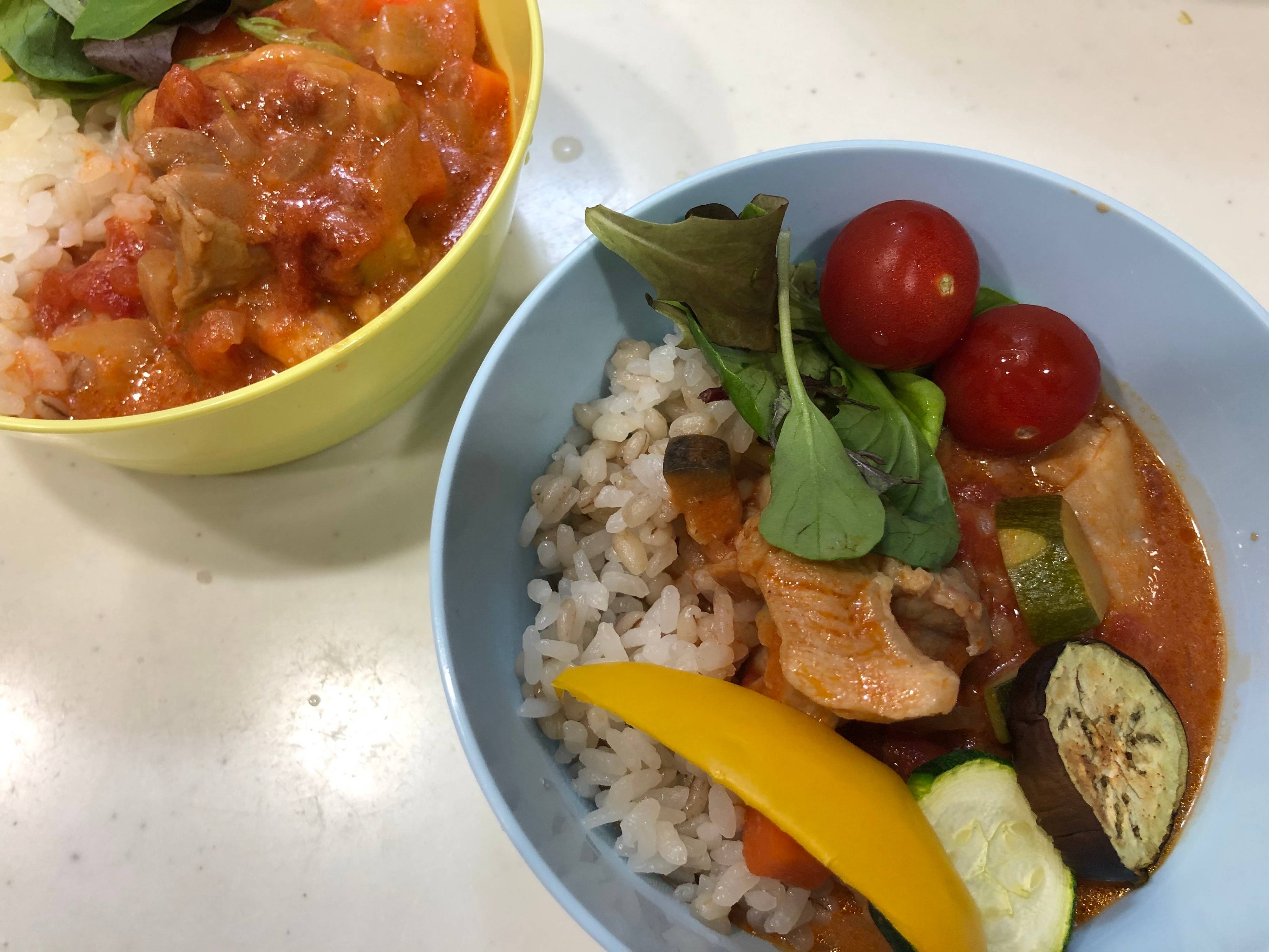 子どもたちは食べやすいようにご飯にかけました。牛乳で酸味がまろやかになるので、トマトスープは「酸っぱい」と言ってあまり食べない息子にも好評でした。
