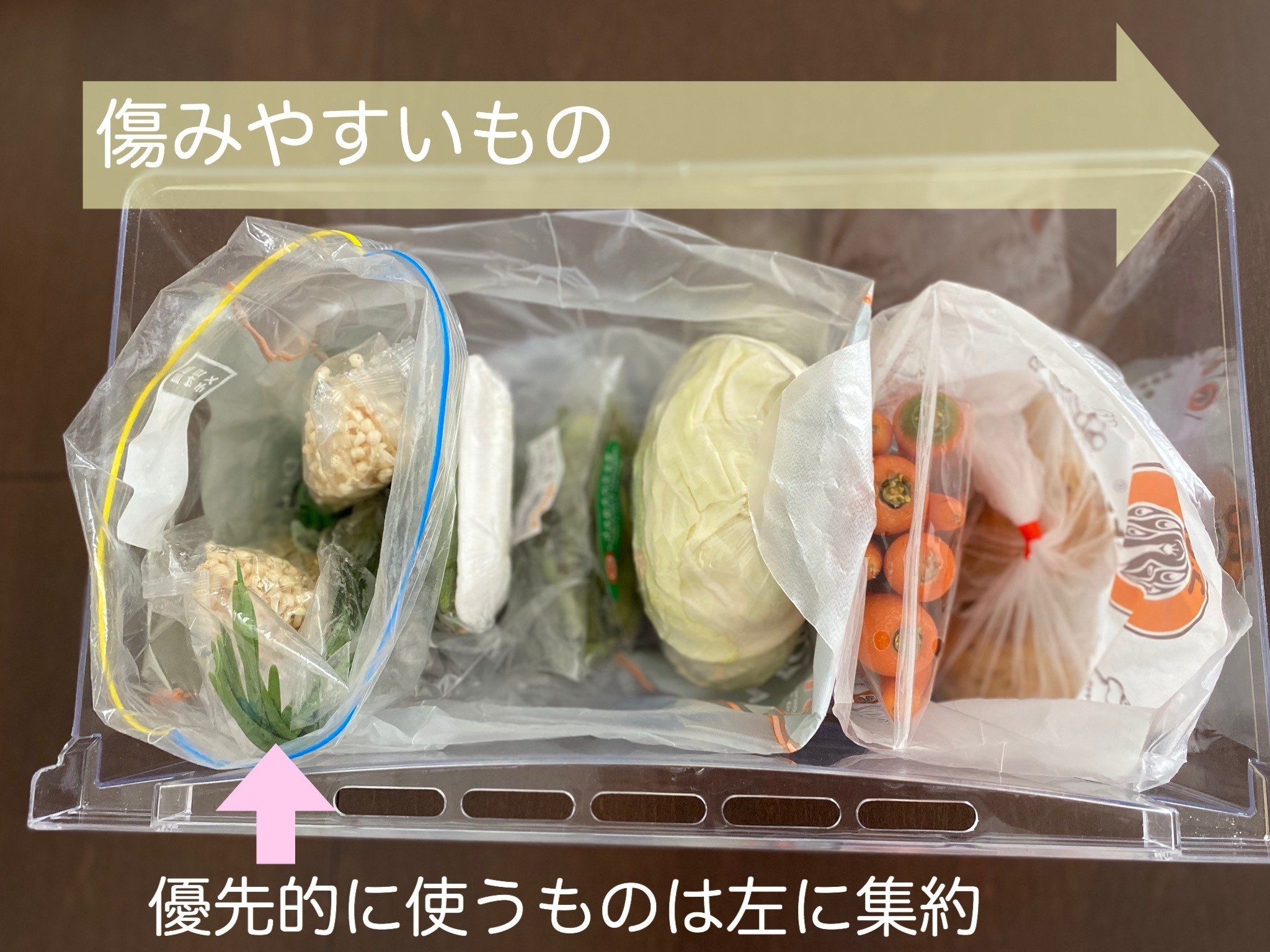 傷みやすい野菜は左に集約!
