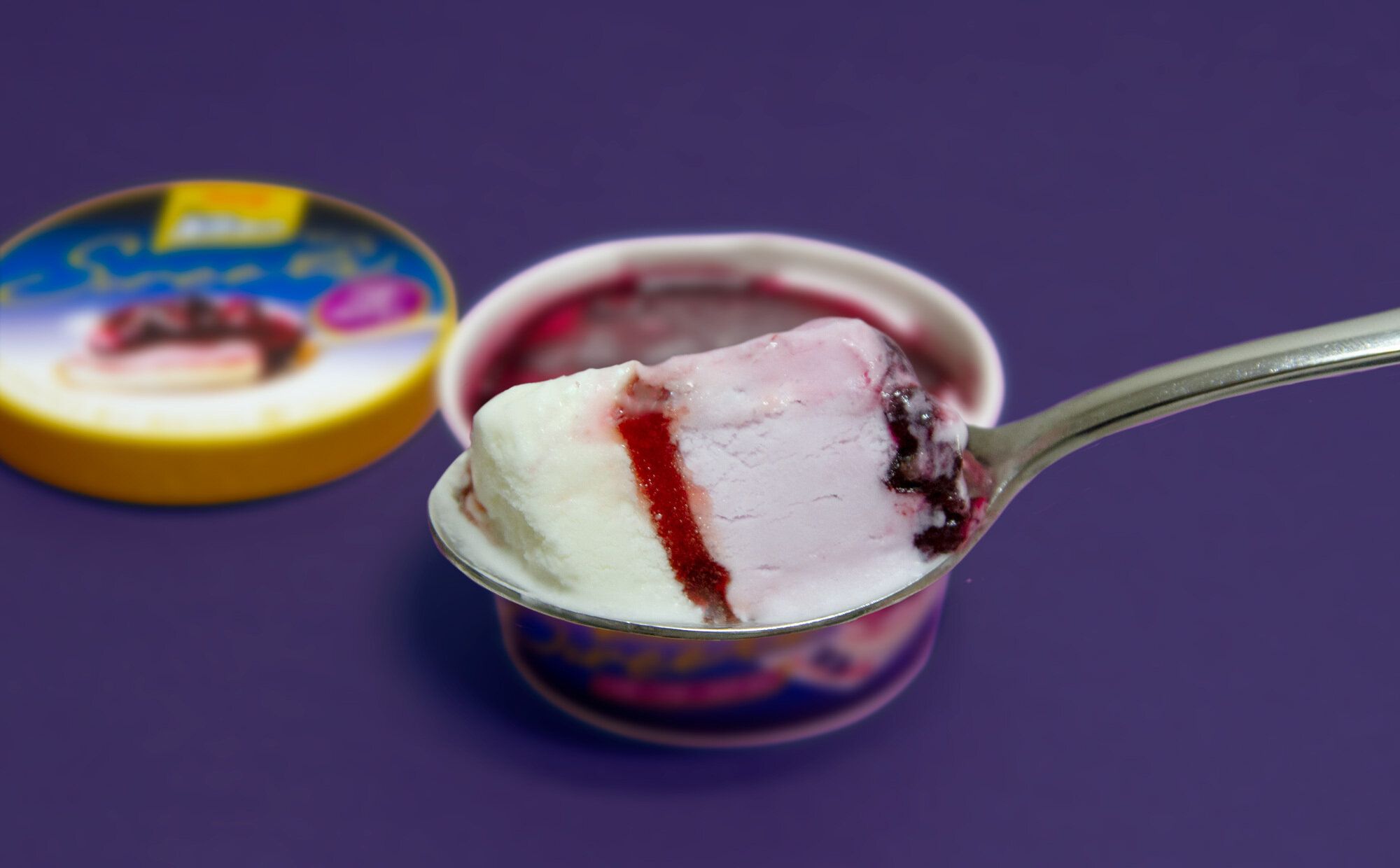 アイスの間には、甘酸っぱいラズベリーソース を挟み込みました。とろっとした質感でアイスと絡めやすいので、ブルーベリームース風アイスとチーズケーキ風アイスの味わいをより引き立てます。甘さと酸味、食感の異なるダブルソースがアクセントとなり、最後まで飽きることなくお楽しみいただけます。