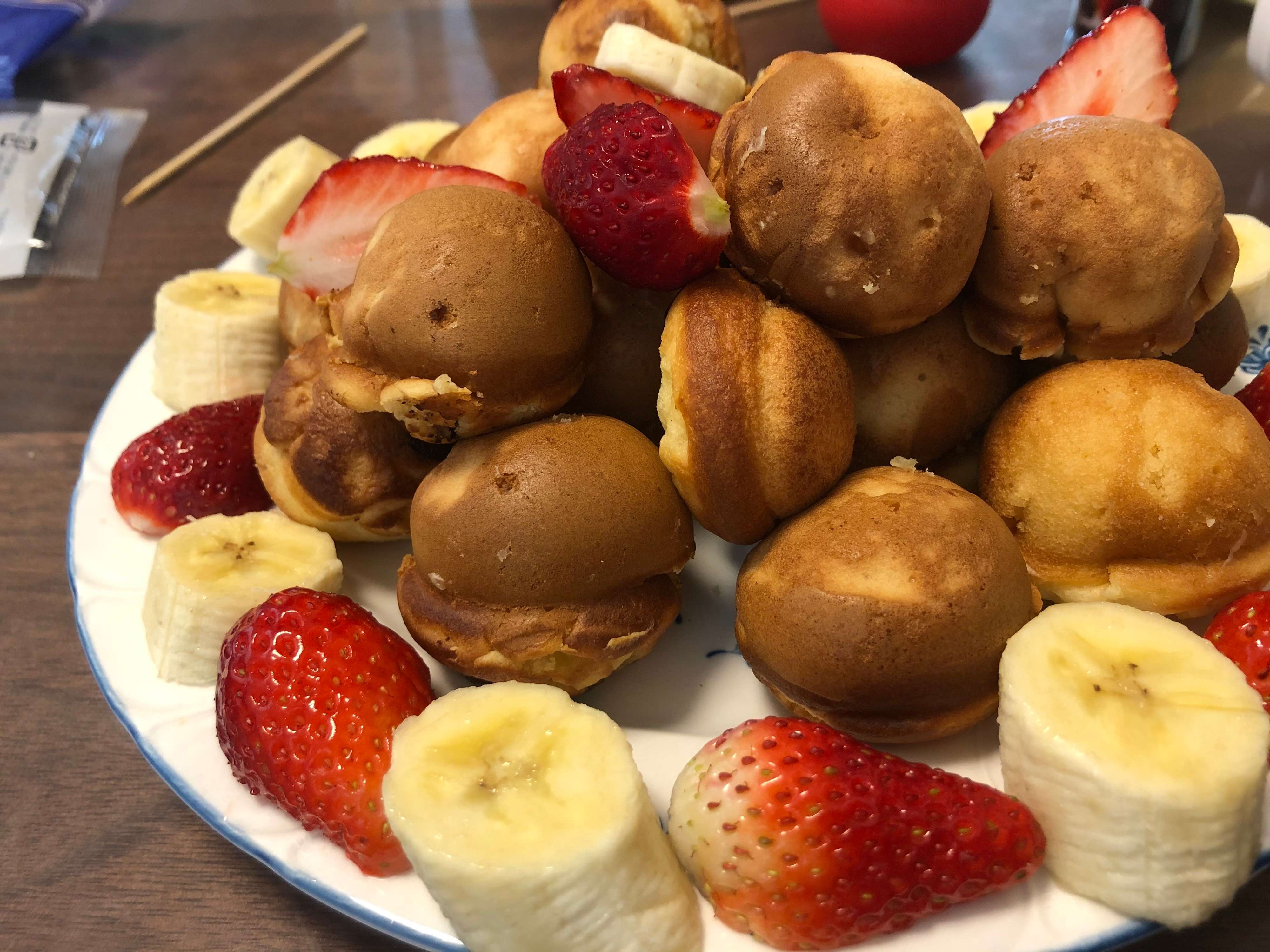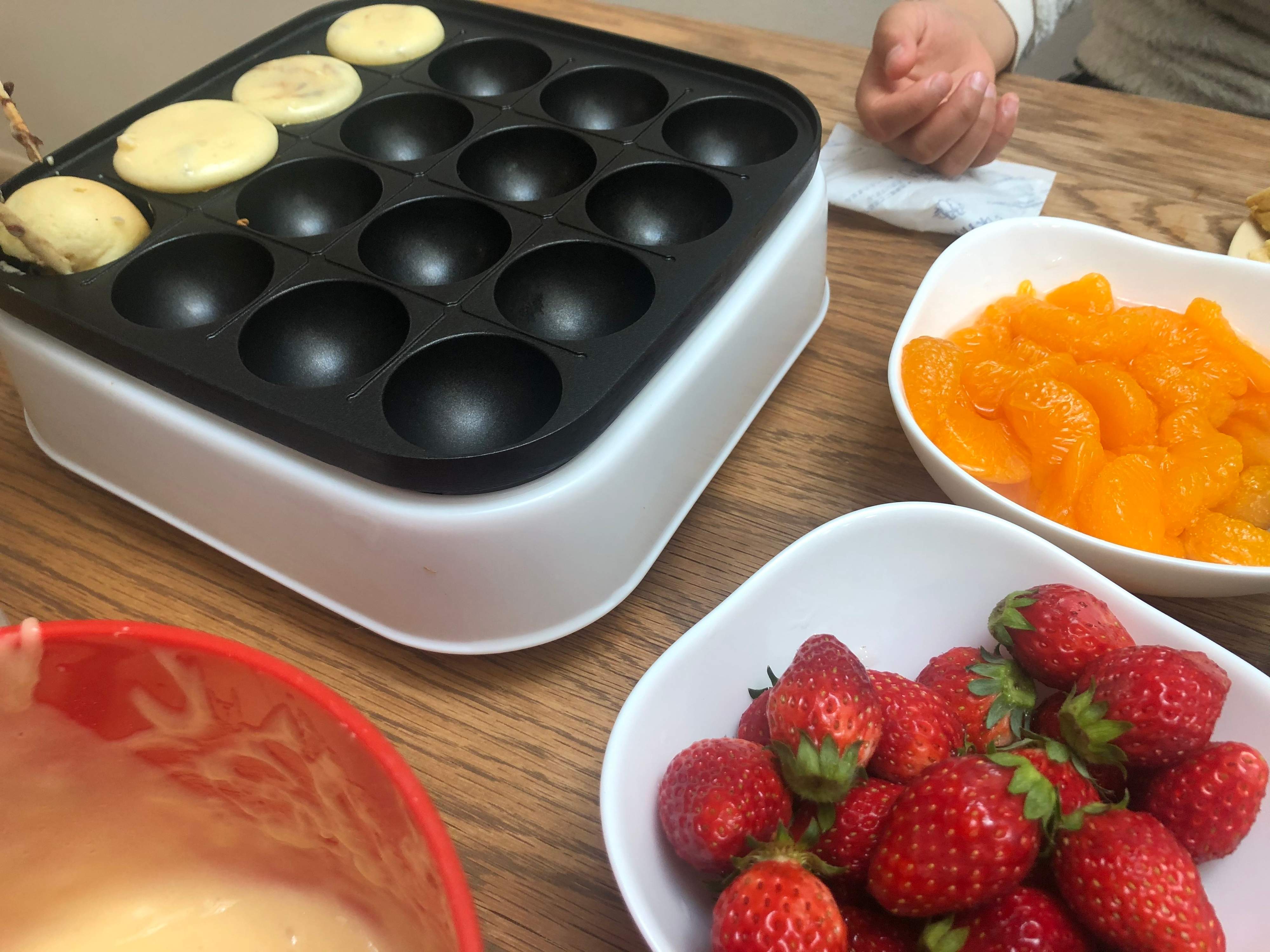 ここでもホットケーキミックスの登場。たこ焼き器でベビーカステラを楽しみます。