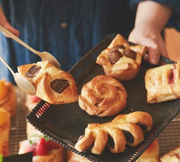 焼きたてが特に格別なのは、バターをたっぷり練りこんだ、サクサクのデニッシュ生地で作ったクロワッサン゜あまーいクリームとフルーツがどっさりのったデニッシュも。家で作れたらいいけれど……。人気料理研究家のゆーママさんに相談してみました。