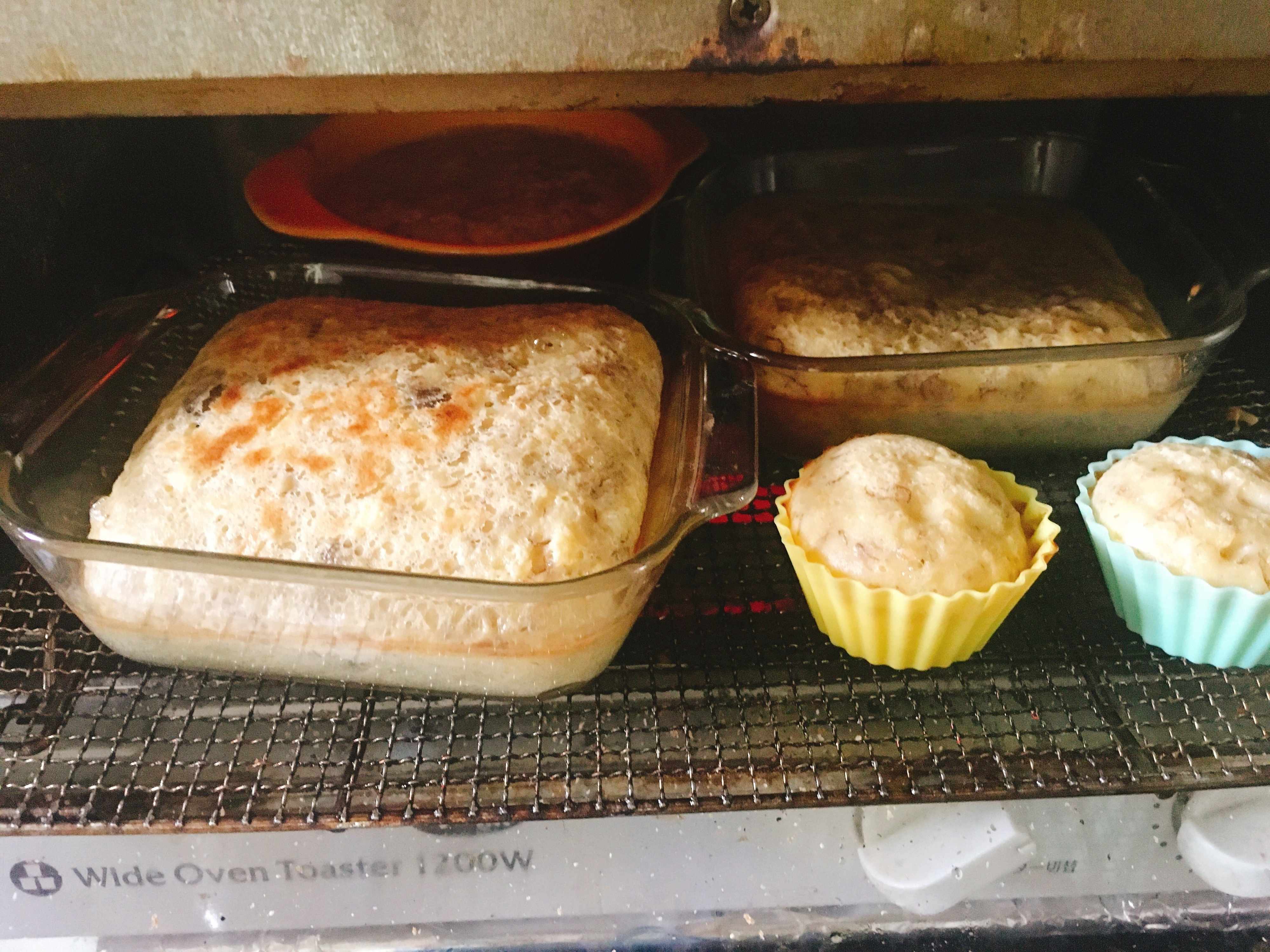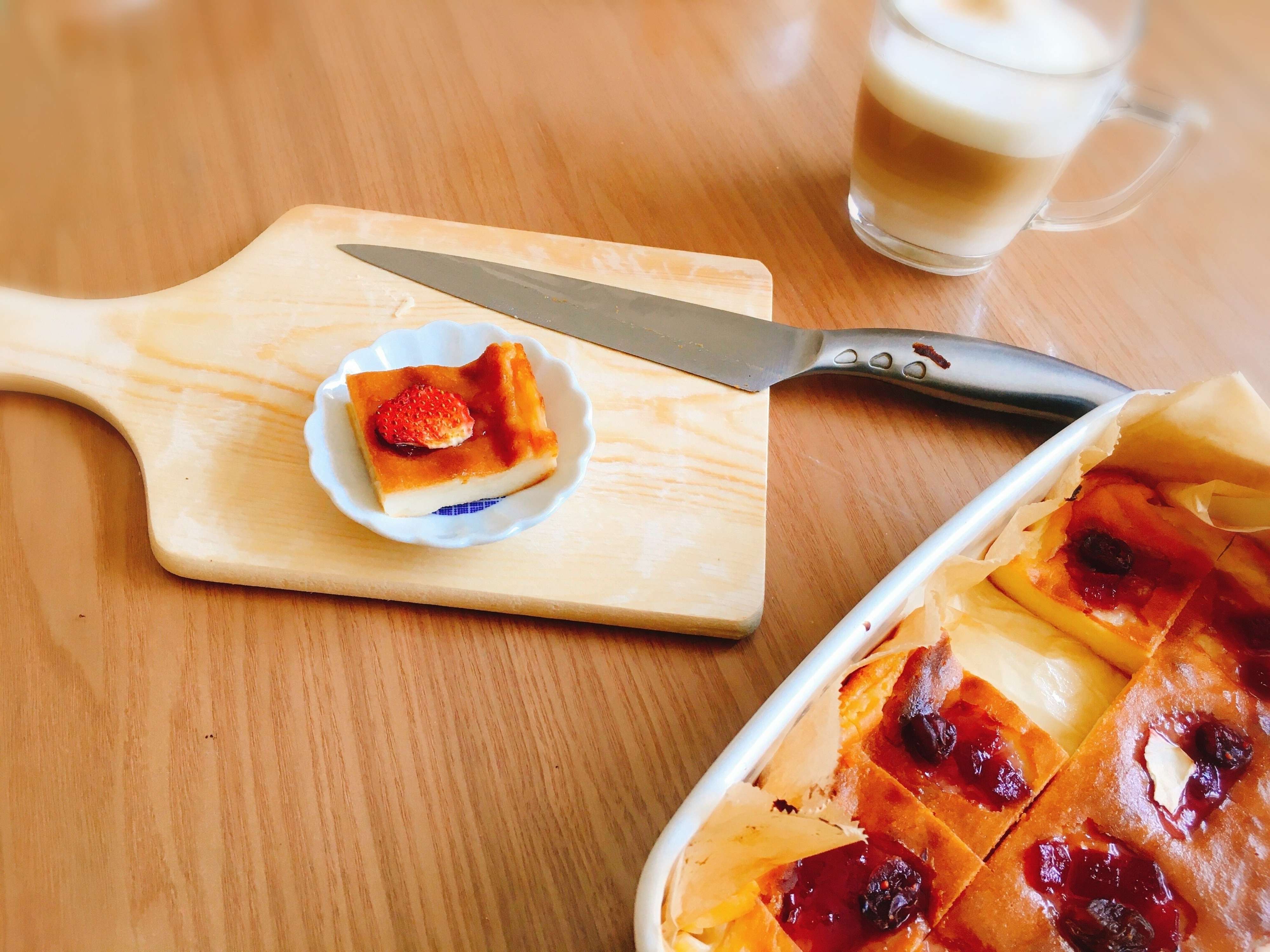 粉ふるいも不要で、サッと混ぜて、入れて、焼く。焼けたら冷やす。私は最後5分に、ジャムとドライフルーツを乗せて、アルミホイル被せて焼きました。子どもたちに大ヒットでした!