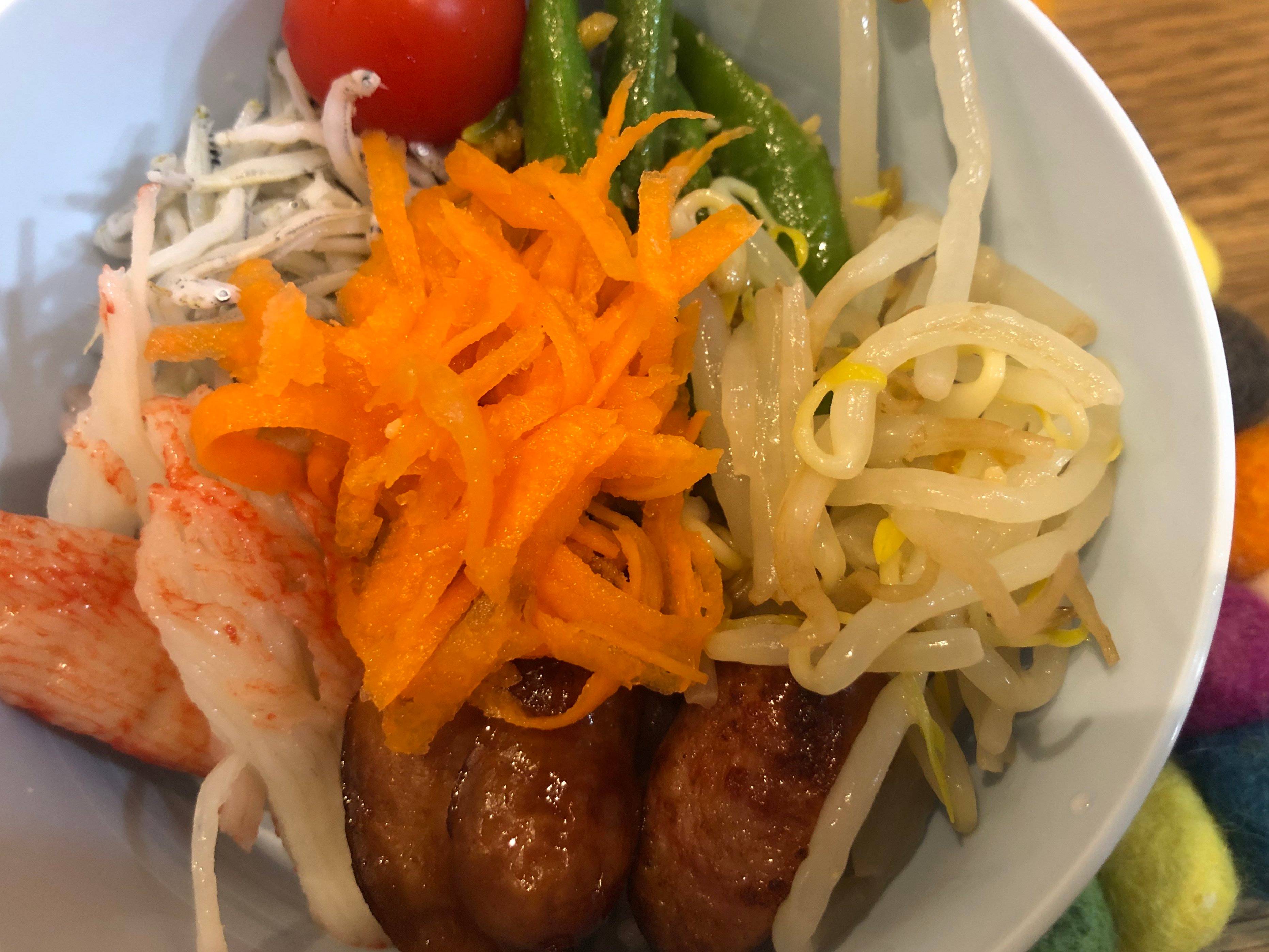 ポイントは「自分で盛り付けること」。盛って渡すのではなく、自分で選んで盛り付けることで特別感が生まれます。嫌いな野菜も少しだけ乗せるというルールにしてみると案外すんなり食べてくれました。