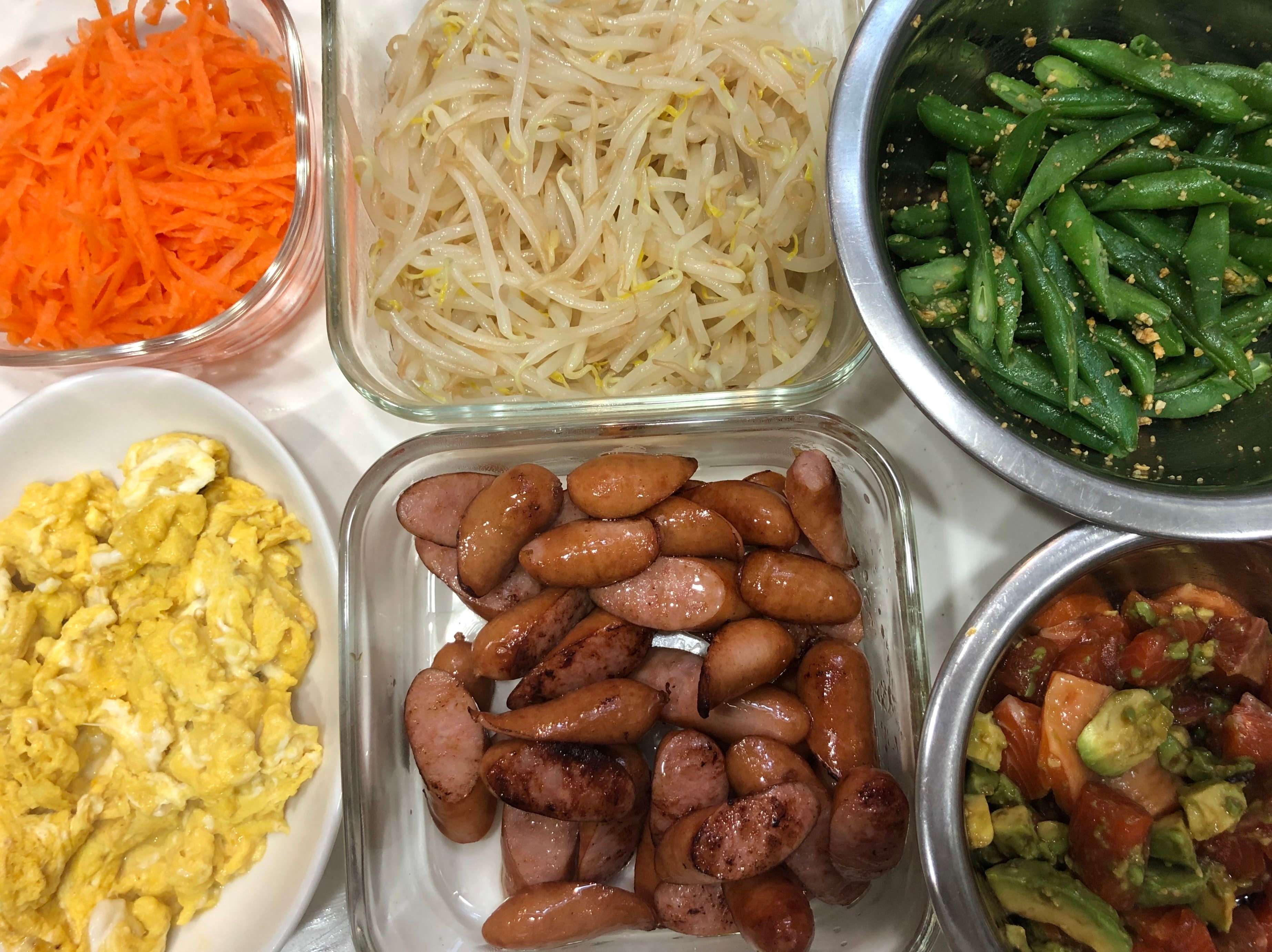 他にも、コーンやミニトマト、カニカマ、シラスなどそのまま使える具材に、マグロアボカド、キャベツの塩昆布和えなど簡単にできる具材を多数用意します。