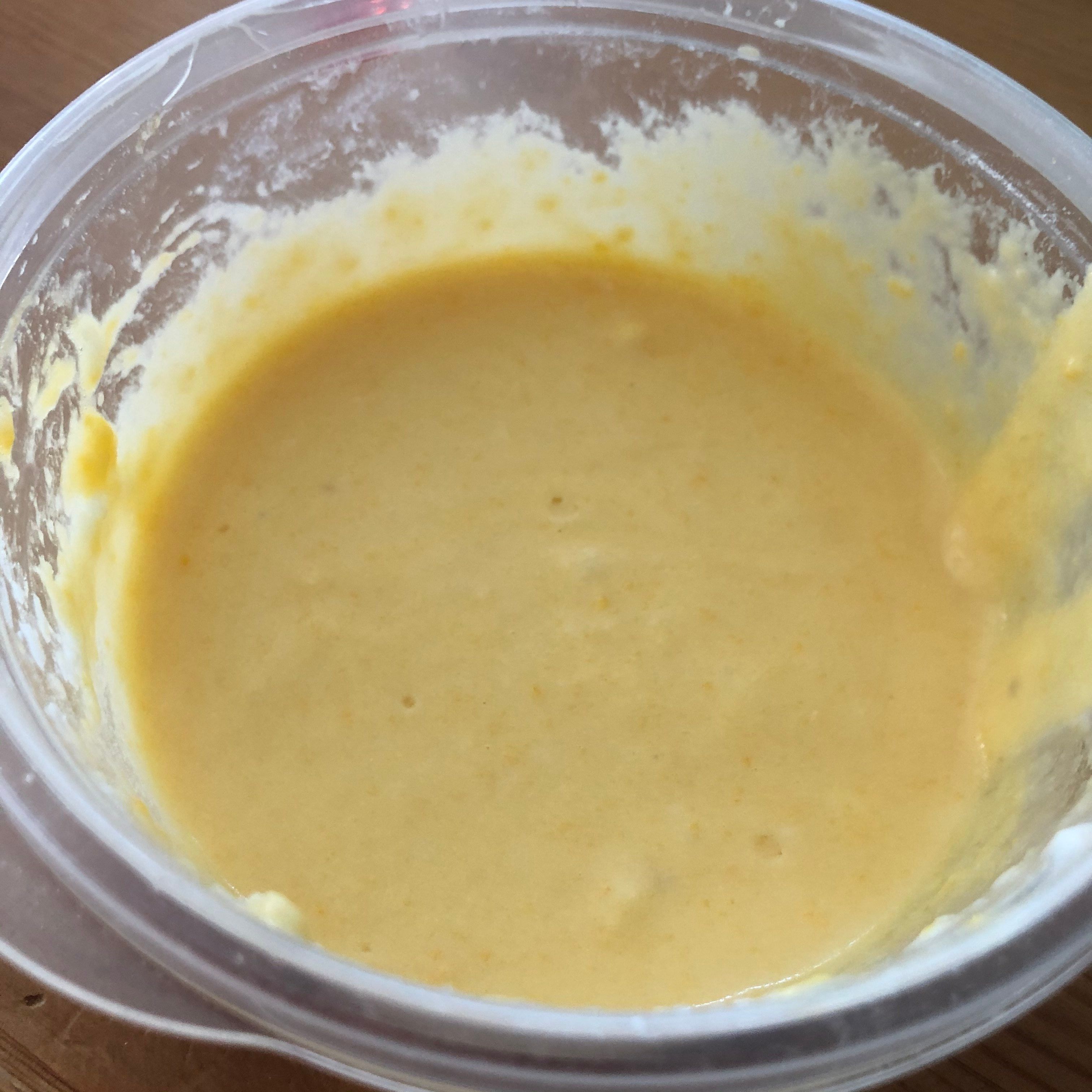 ※最初はダマになっていますが、よくかき混ぜるとなめらかになってきます。