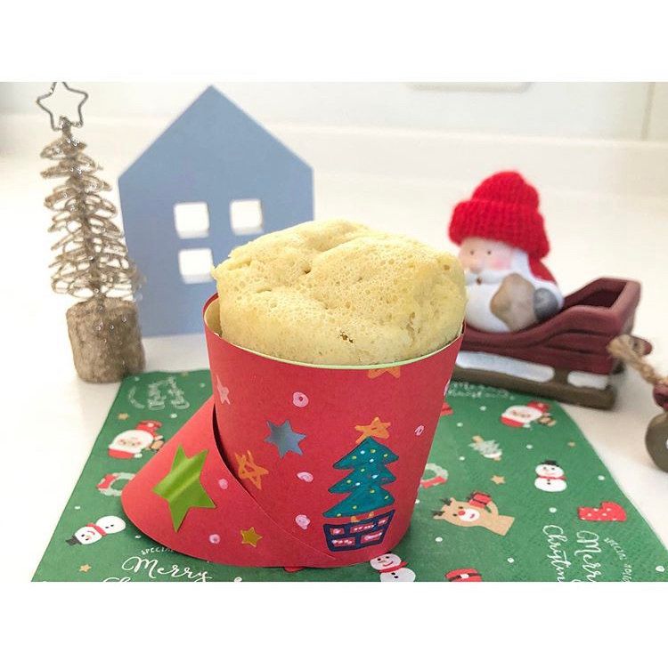 この写真は昨年の冬、クリスマスブーツに見立ててつくったカップケーキです。ココアパウダーを入れてココア生地にしたり、生クリームやフルーツでデコレーションして、簡単なケーキにしても楽しめます。