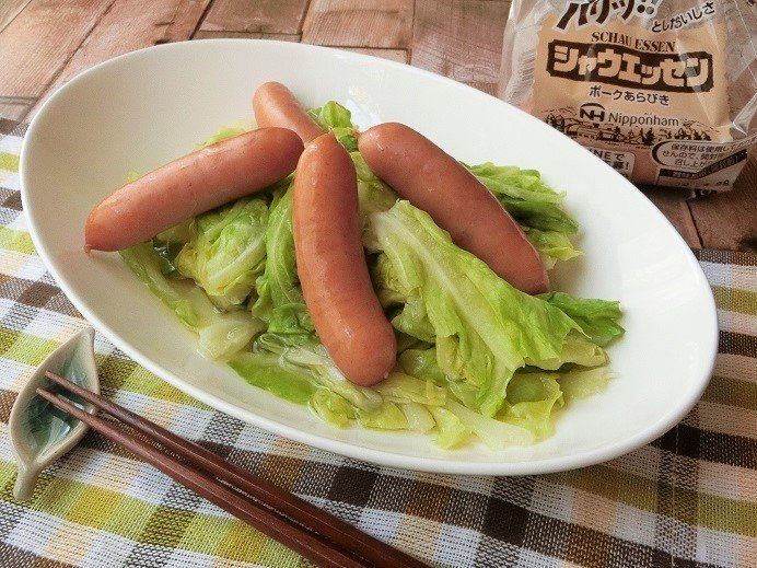 【簡単レシピ1】キャベツとウィンナーの白だし煮