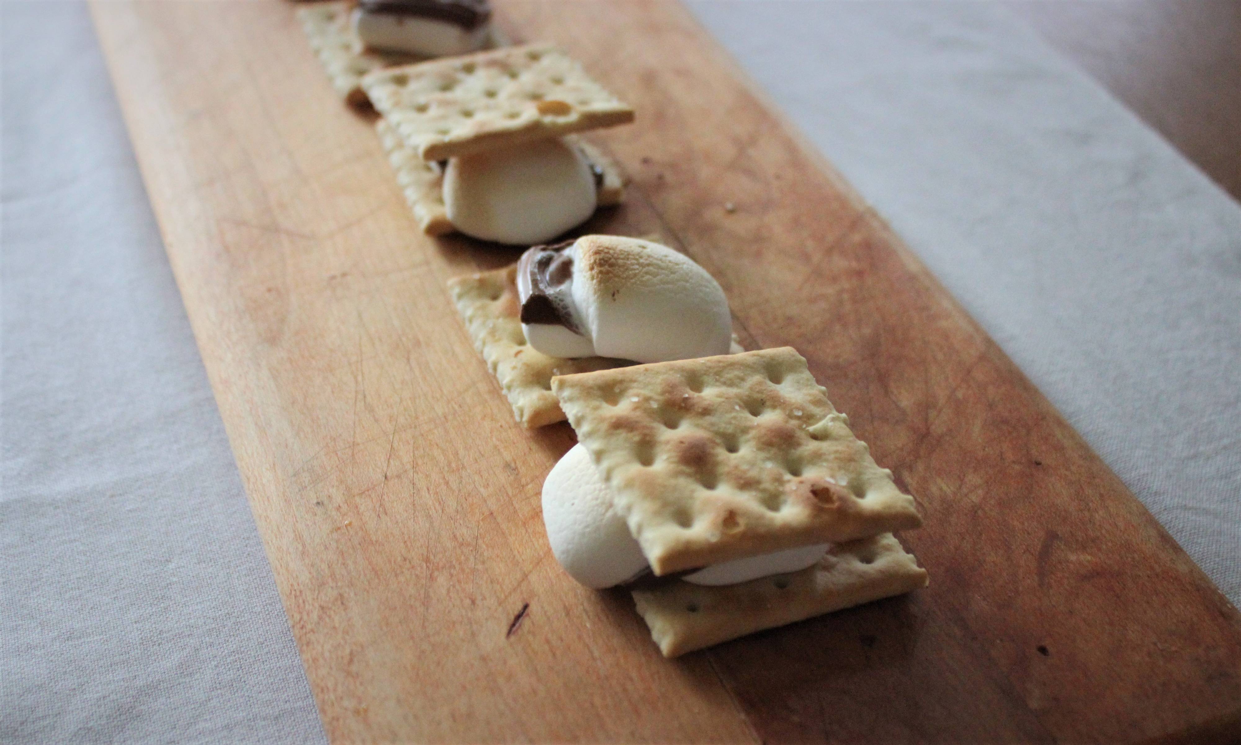 バーベキューなどのアウトドアでマシュマロを焼いて、チョコと一緒にクラッカーで食べるというものなのですが、おうちでも簡単に作れちゃうんです!