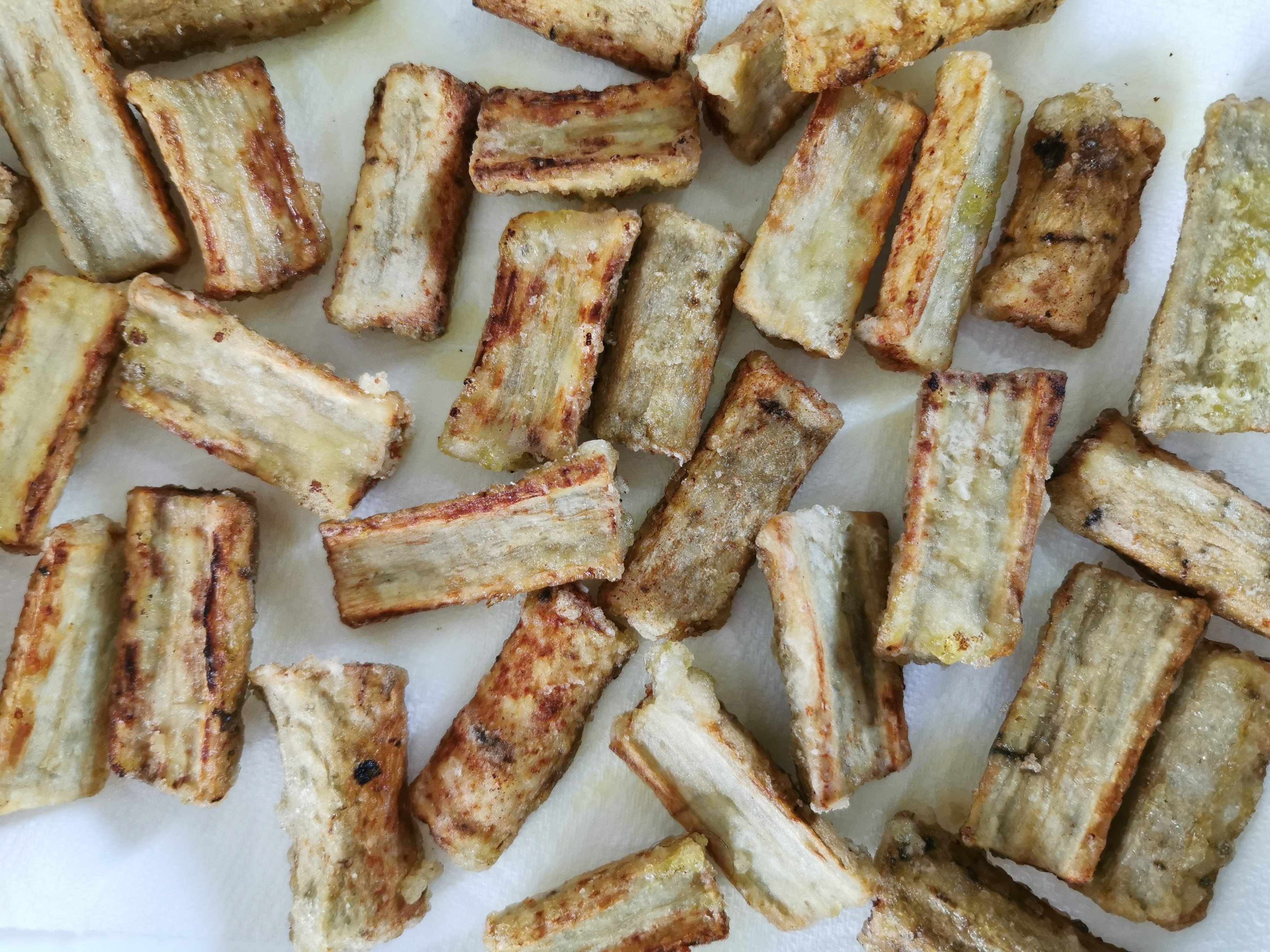 3.きつね色になったら、キッチンペーパーをひいたお皿に一度あげる。