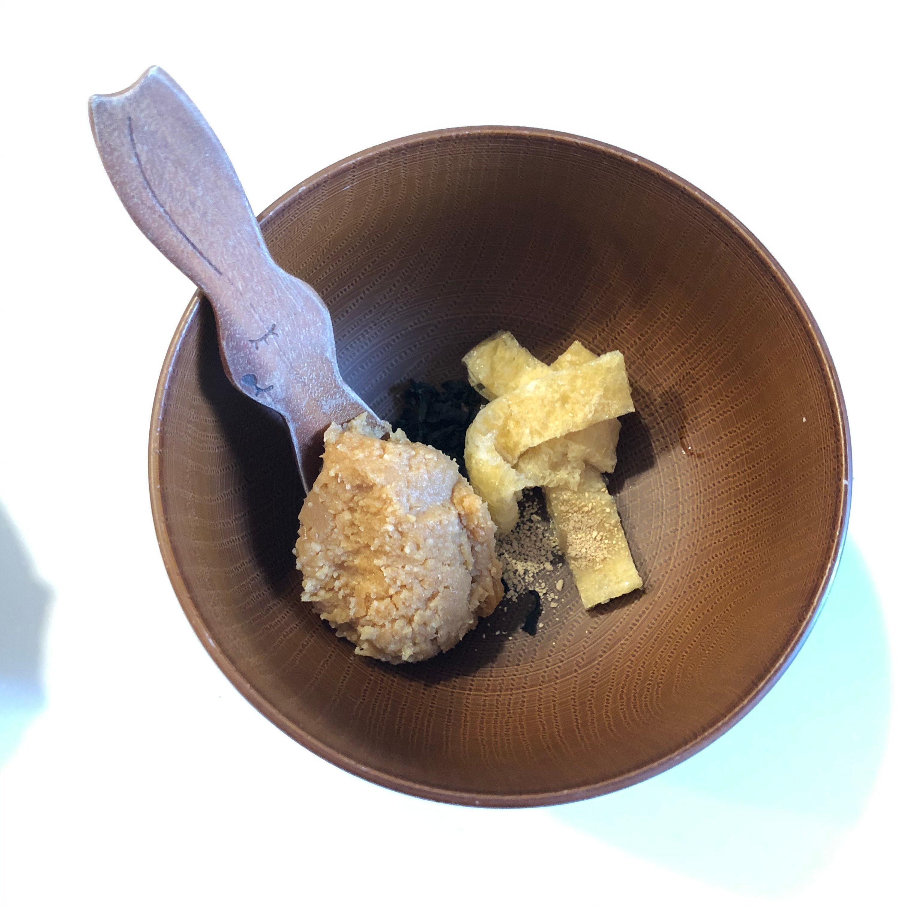 用意するのは【味噌・出汁・具材・お湯・お椀】です。えっ!?普通じゃない?と思った方もいると思いますが、ここからが普通じゃないんです。お椀の中で味噌汁を完成させます!!!