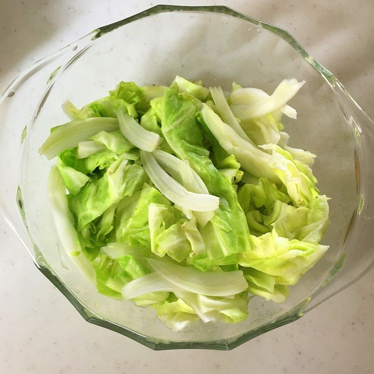 キャベツがしっとりするぐらいに加熱時間は様子を見ながら加減して下さいね。出た水分は切っておいてください。