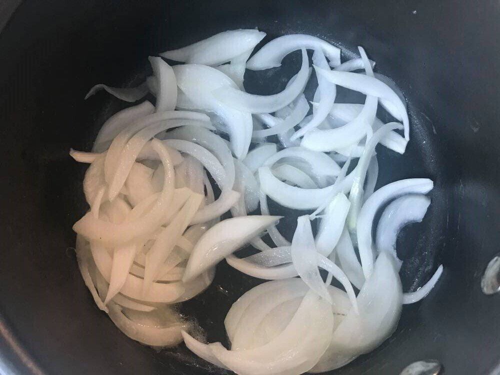 ・玉ねぎは薄切りにする。