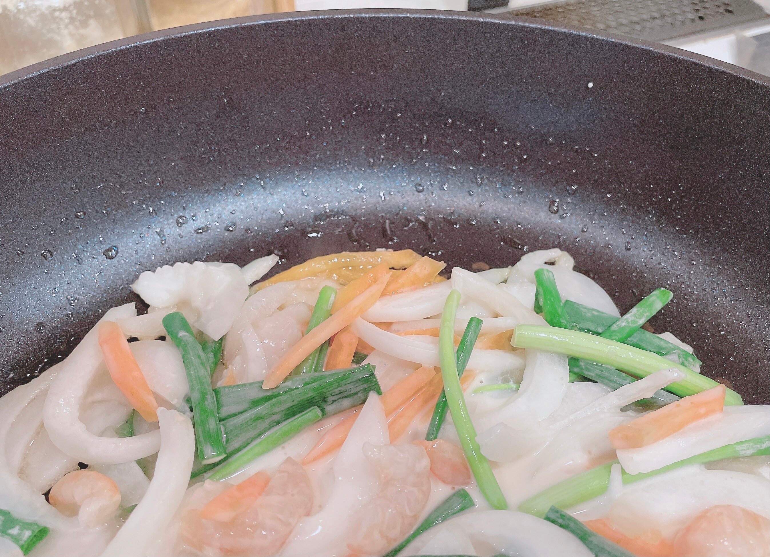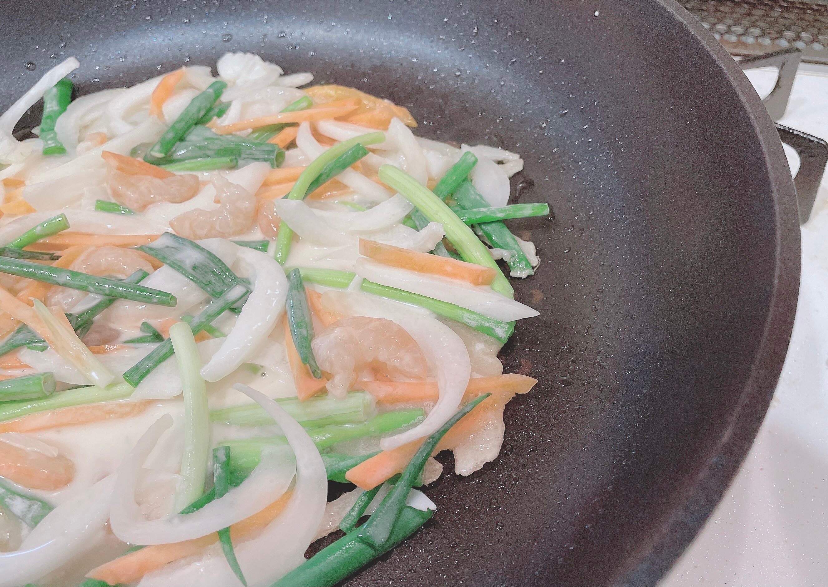 具材と具材の間を埋める程度に生地を足してひっくり返しましょう。