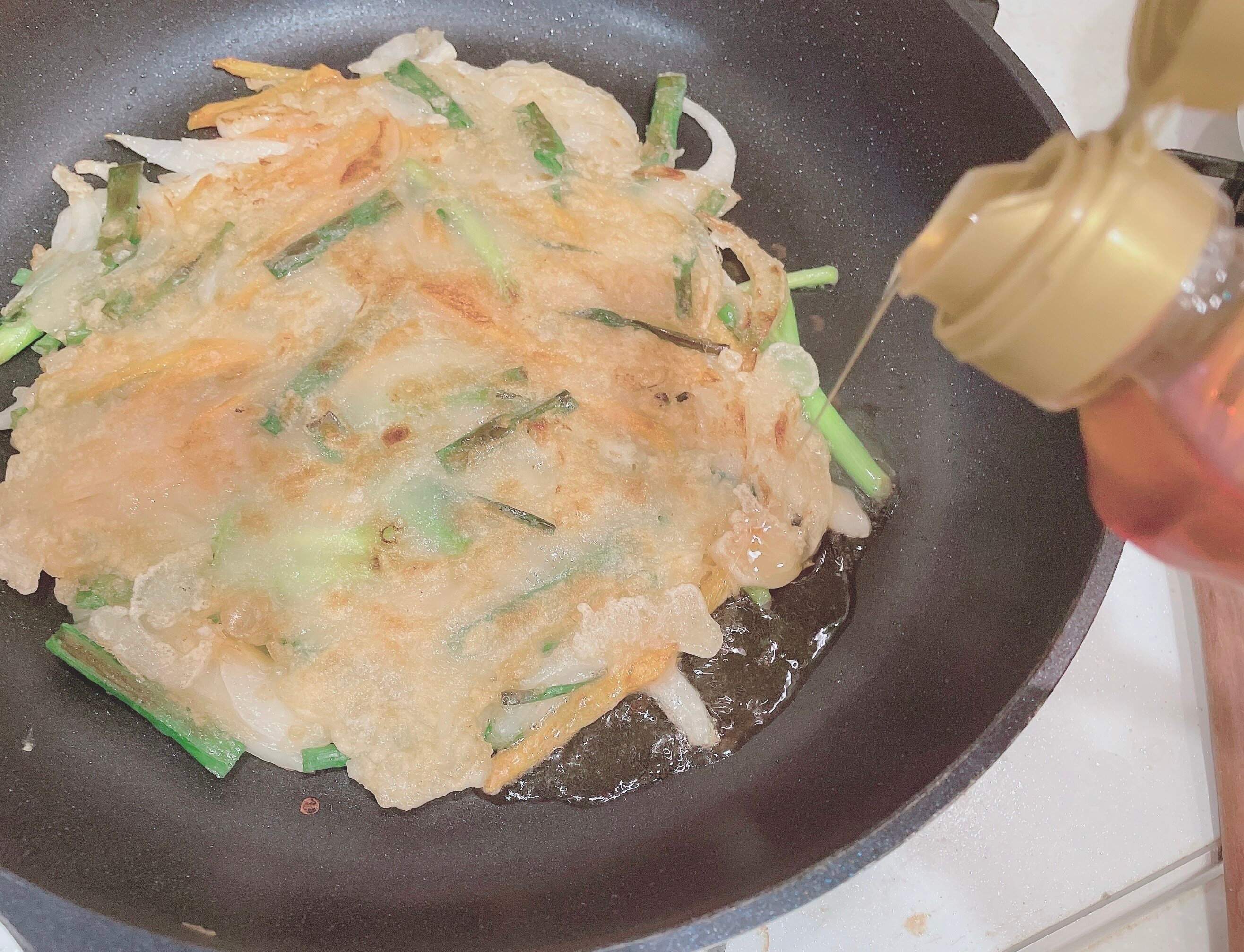 チヂミはお好み焼のようにふっくら焼くものではないので、