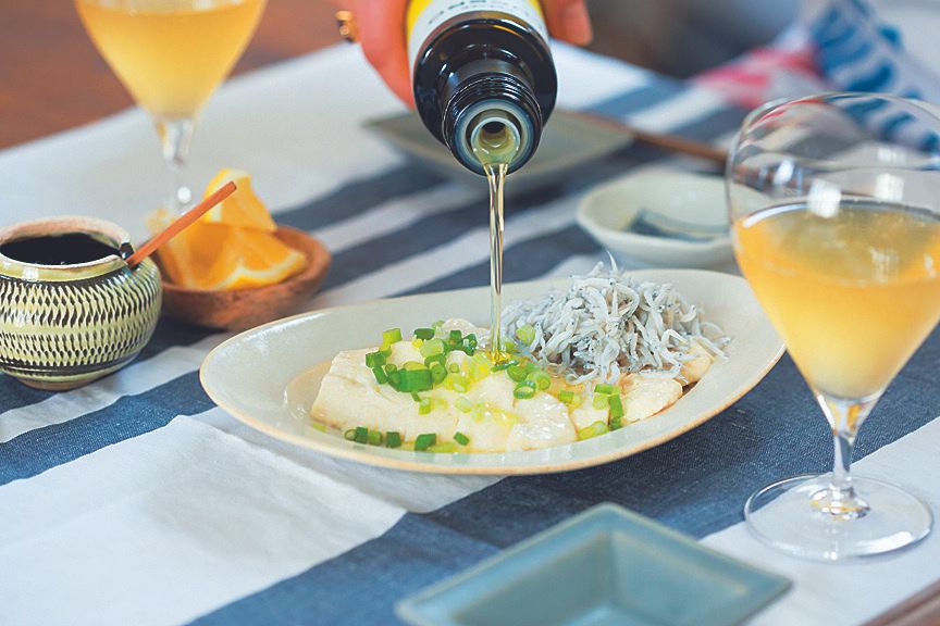 新鮮な魚にオリーブ油をかけ、肴にしてお酒を飲む。オリーブ油でつまみライフを楽しんでいる朴さんにお話しを伺いました。お刺身や豆腐のような和の食材にオイルをかけると、ワインがすすむおつまみに。調味料ひとつで、合わせるお酒が変わるんですね。