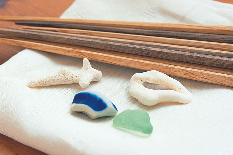 家族で旅した砂浜で見つけた、サンゴやガラスのかけら。思い出とともに、夏の箸置きになることもあります。