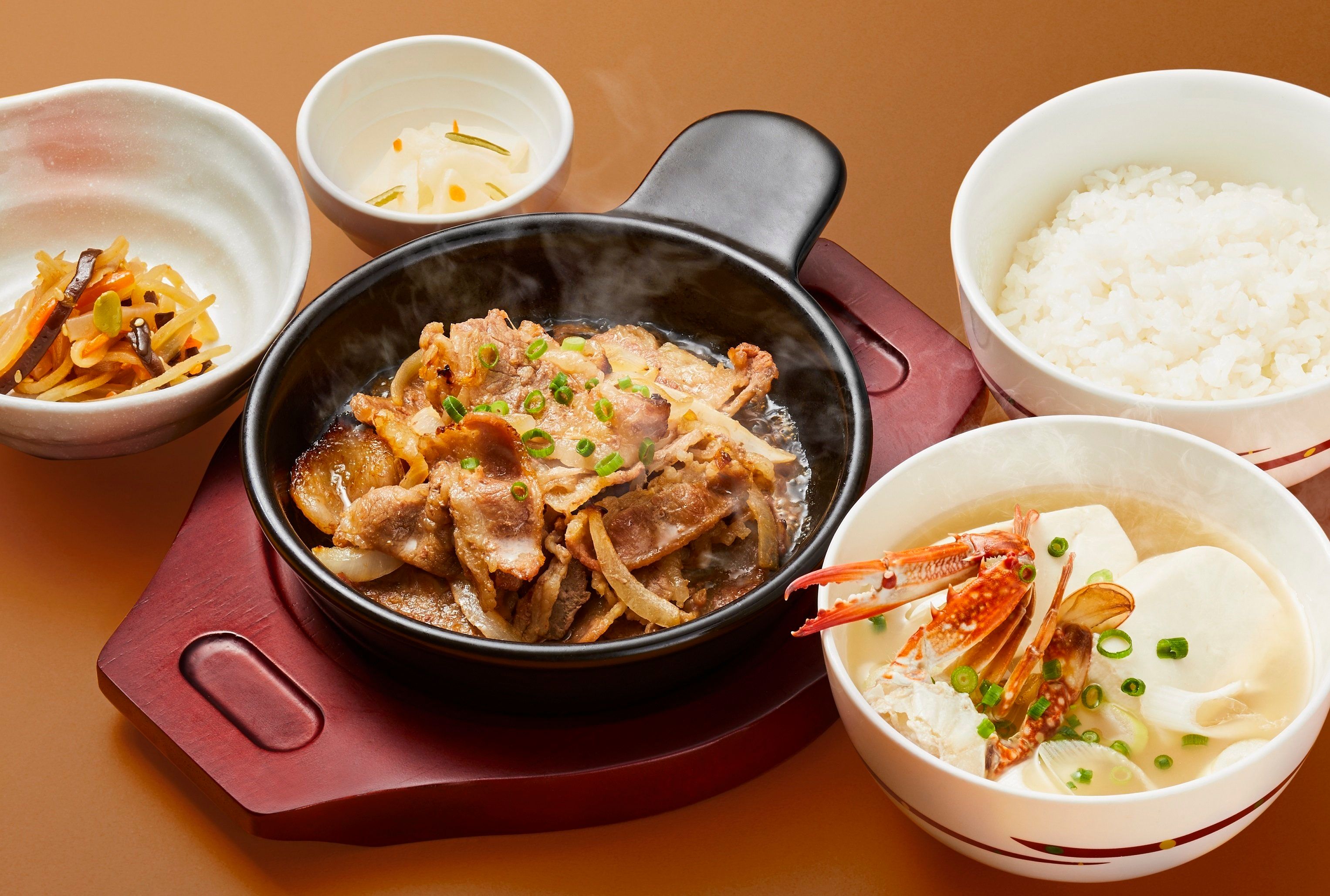 4. <青森> 牛バラ焼きとカニ汁和膳[ご飯・小鉢・漬物付き] 999 円