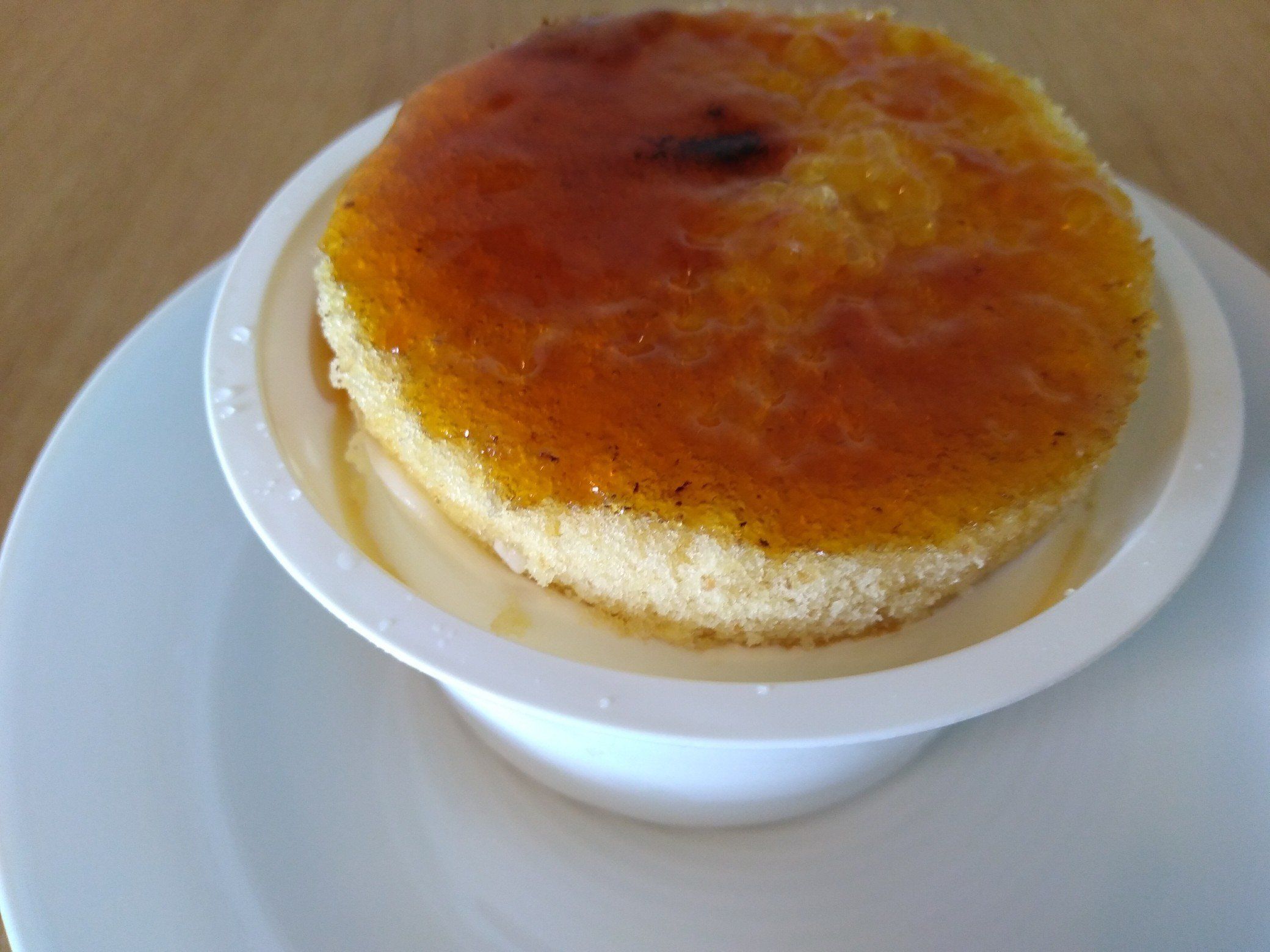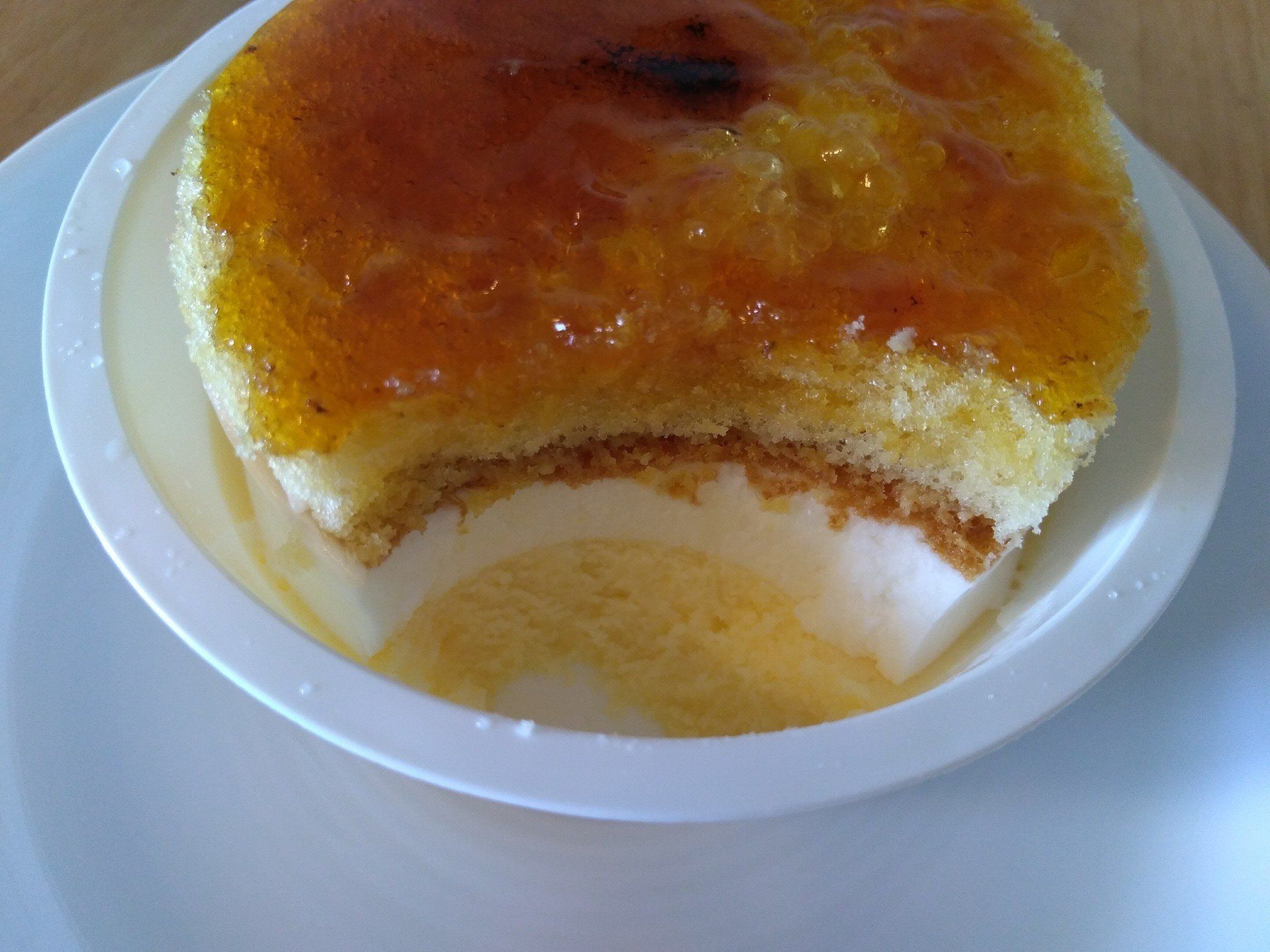 いわゆるクレームブリュレや専門店のブリュレチーズケーキのように、パリッとした表面ではありませんが、キャラメリゼされたザラメ糖のジャリッとした食感やほろ苦い香ばしさは、さまざまな事情や限られた条件のなかで、上手にブリュレ感を表現していると思いました。