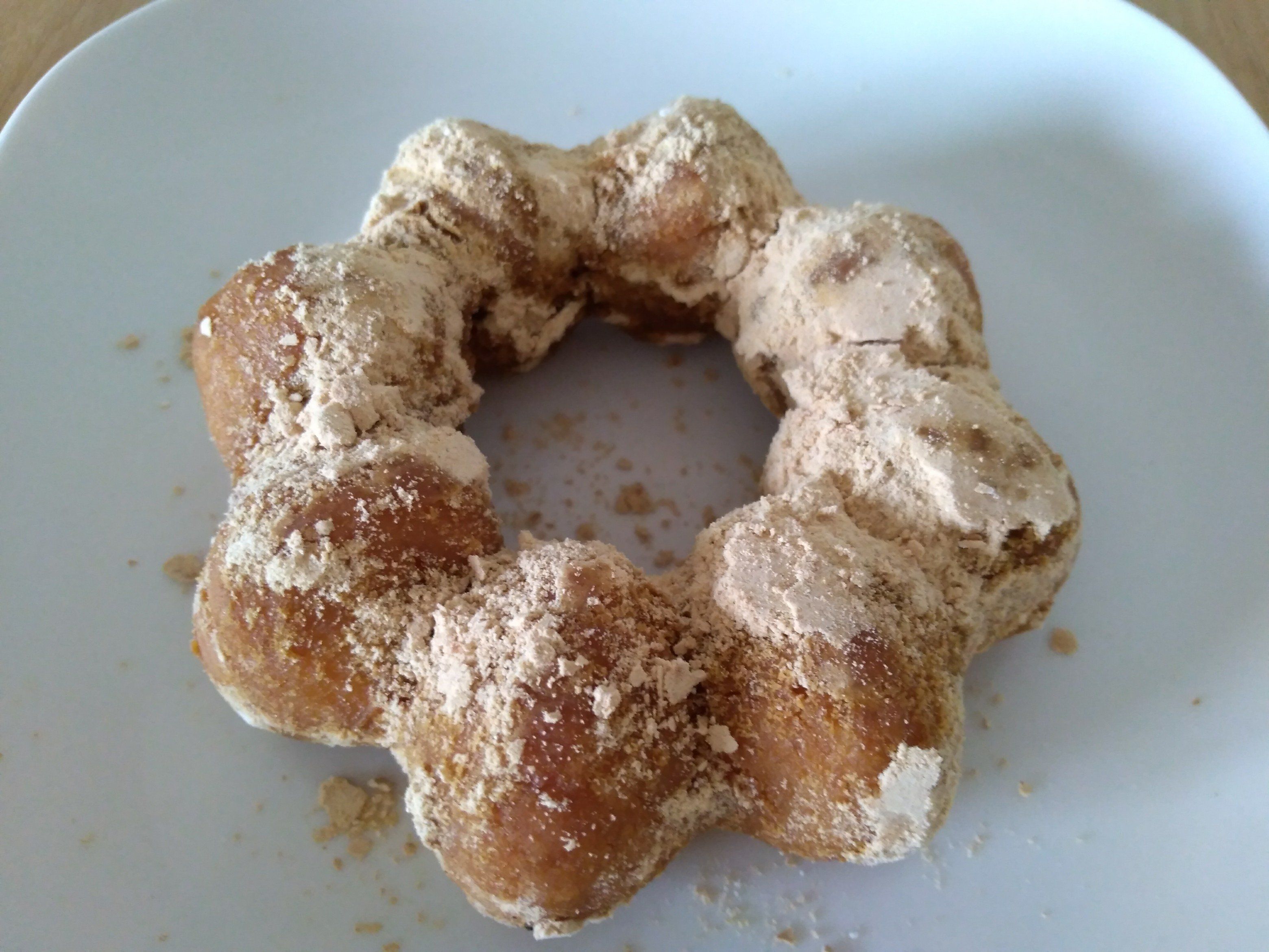 黒みつがしみ込んでいるせいか、生地はほかより少ししっとりしています。さつまいも×黒みつ×きなこの一体感を感じ、さつまいもドの枠を飛び出た、完成された和風ドーナツのような風格がありました。