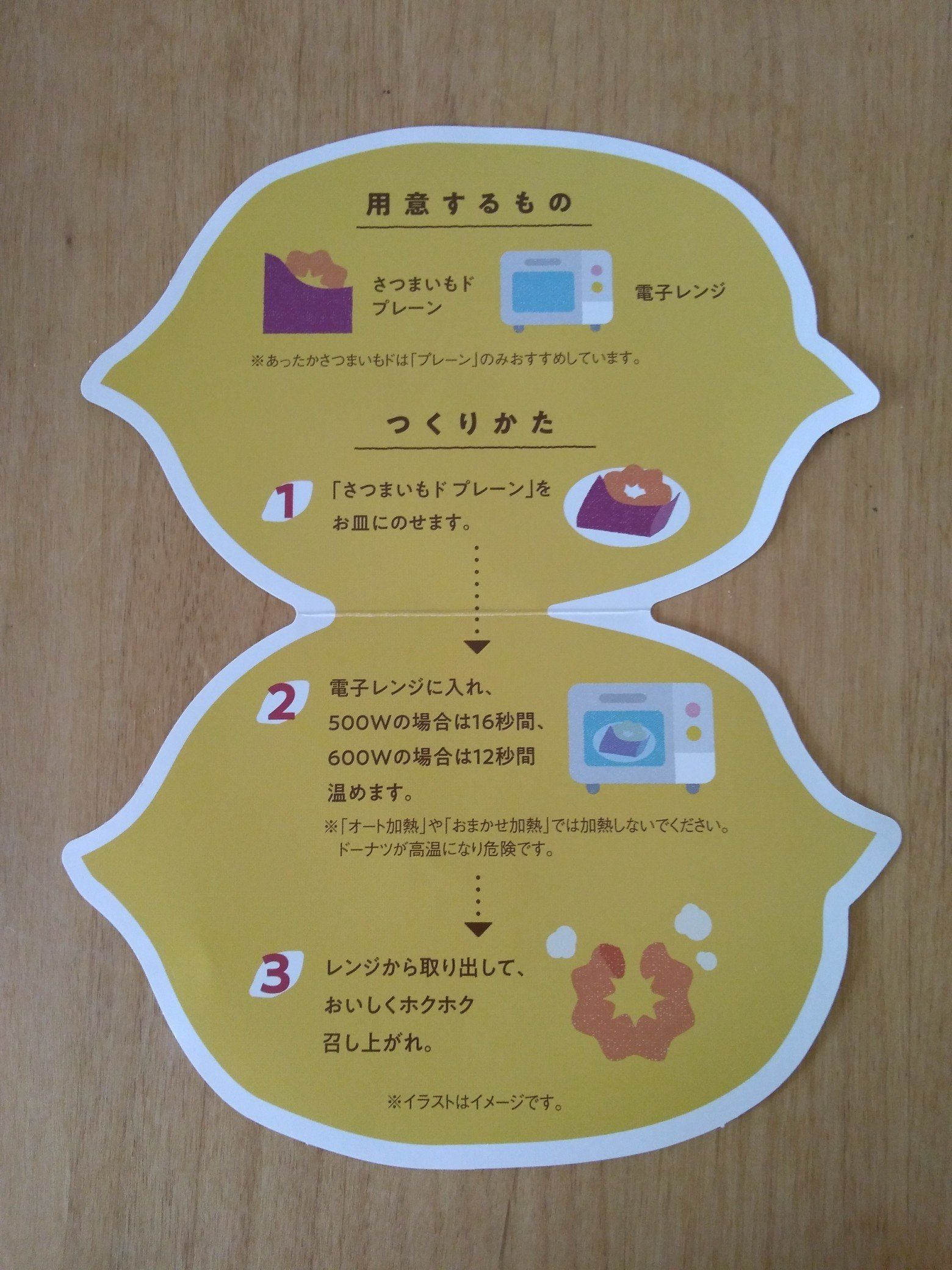 「さつまいもド プレーン」のみ、温める食べ方もオススメしていて、お店にかわいいパンフレットがありました。