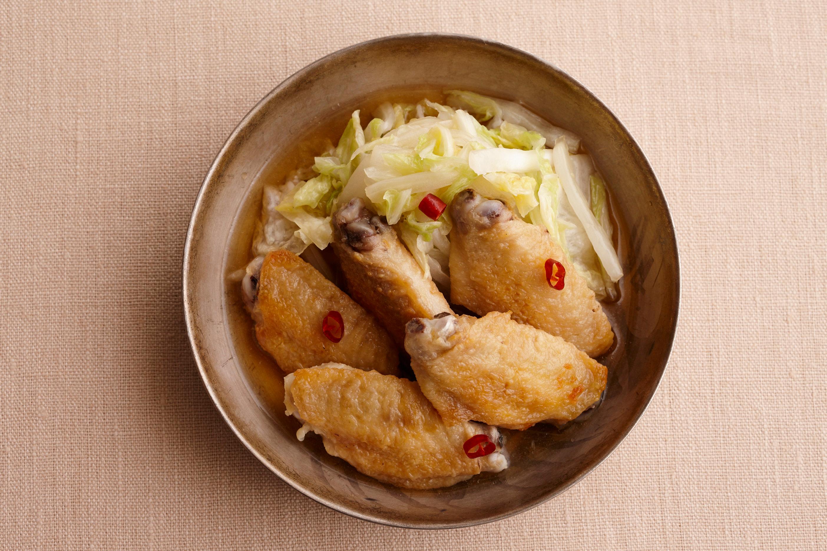 ※冒頭の写真のように、鶏肉と白菜を分けて盛り付けると、よりボリュームが出ます。