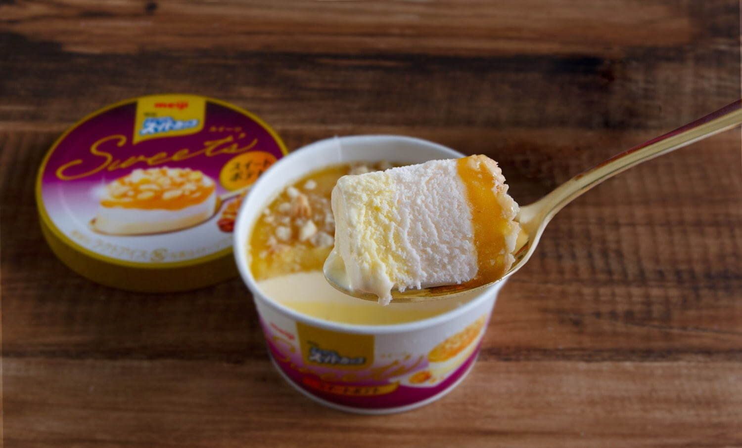 「明治エッセルスーパーカップSweet’s」シリーズは、アイスと素材を重ね合わせることでアイスならではのおいしさを上質なスイーツの味わいに仕立てあげた『層状アイスデザート』。
