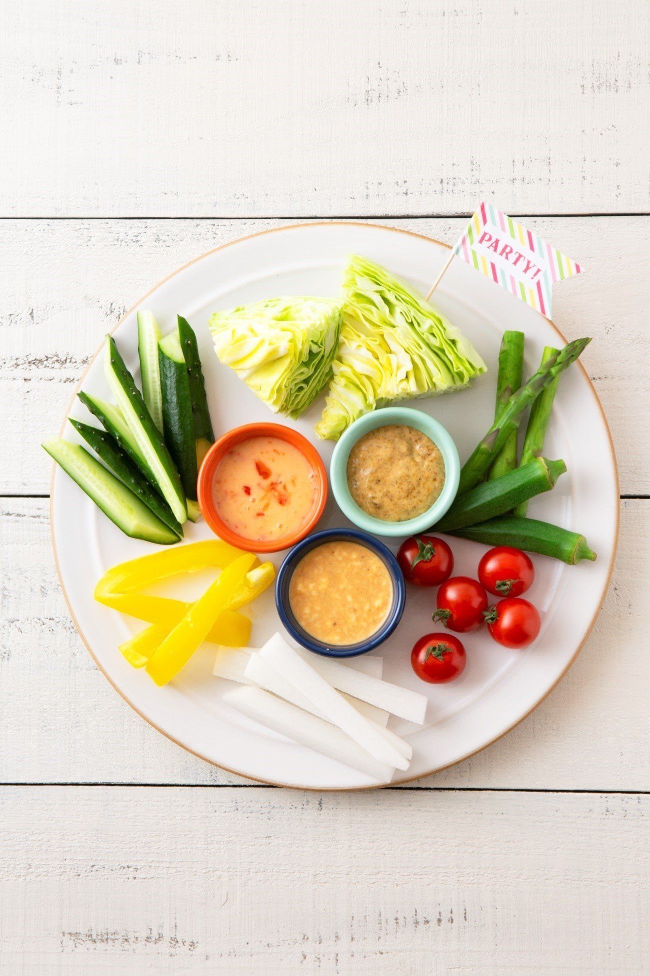 ① 野菜は食べやすく切って器に盛り、A B Cのディップを添える。