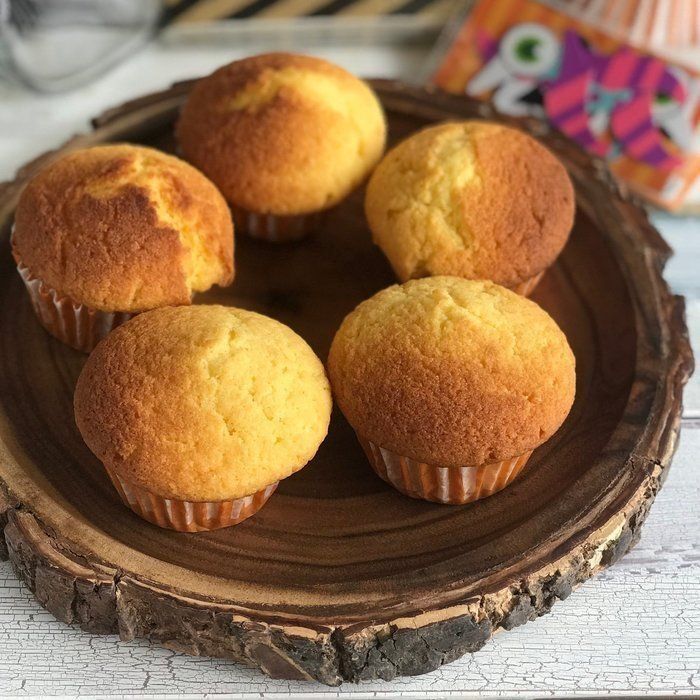(2)マフィンのカップに(1)を8割ほど注ぎ、170度に温めておいたオーブンで20分~30分焼く