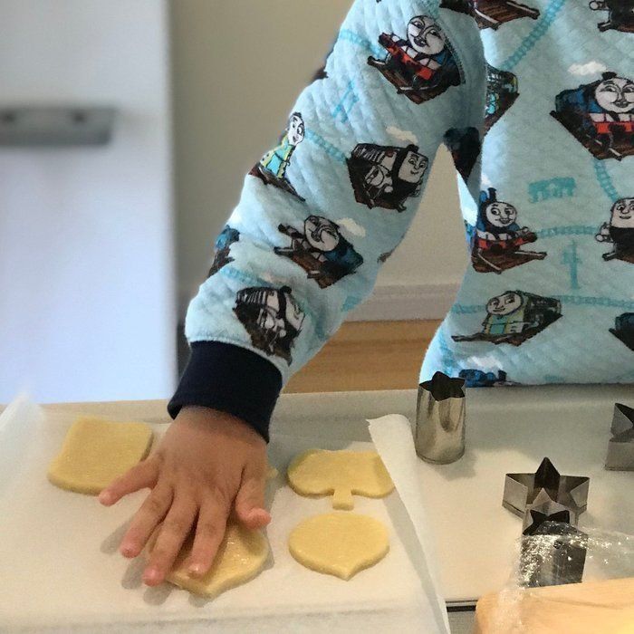 ホットケーキミックスを使うといろいろな材料をショートカットできるので便利です。なので材料は、ホットケーキミックスと無塩バターの二つだけ。つくり方もシンプルなので、親子クッキングにおすすめです。