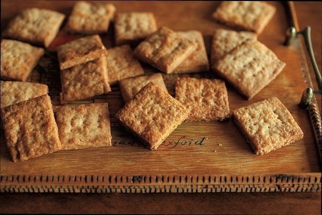 チーズの香ばしさとごまの食感がおいしくて、楽しくて、手が止まらない。大人はワインと合わせても。