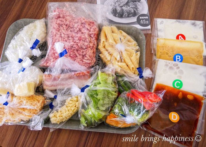 受け取ったミールキットの中身(2人前)がこちら。ミートローフは、合いびき肉とナツメグで作る本格仕様! 調合済みのデミグラスソースと、つけ合わせにグリル野菜、マッシュポテト、ペンネのチーズ焼きがセットになったごちそうメニューです。