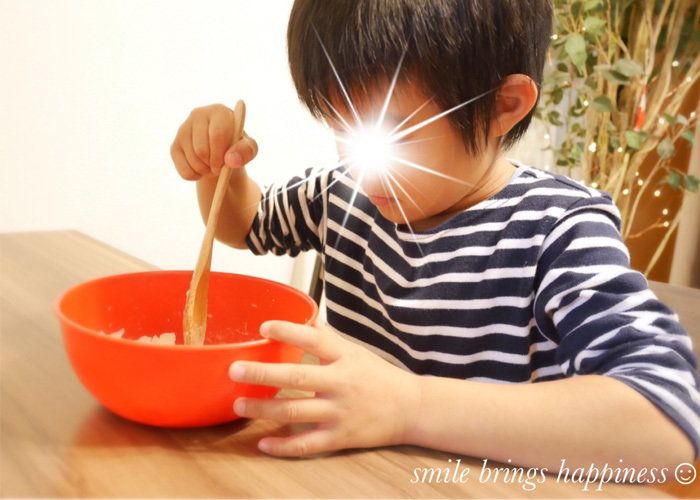 もともと食べることが好きな二男くんはマッシュポテト作りを担当。じゃがいもはカット済みだから、電子レンジで温めて、計量済みの調味料を入れて混ぜるだけ!
