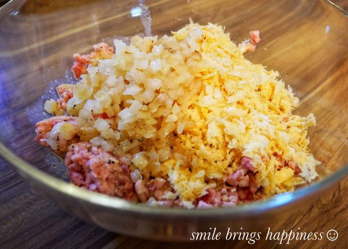 メインのミートローフは、IDUMIさんがドキドキしながら初挑戦! 合いびき肉にパン粉や玉ねぎ、ナツメグなどを混ぜて形を作ります。とはいえ、材料はカット済み&調味料も計量済みだから、混ぜるだけとこちらも簡単。