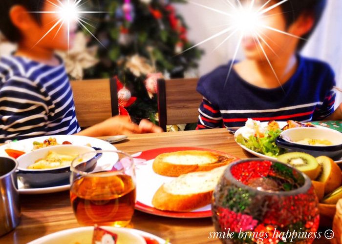 自分たちが手伝った料理がおいしそうに並んでいるのを見て、息子さんたちはとびきりの笑顔。この日はいつもより食事の時間が大いに盛り上がったとか。