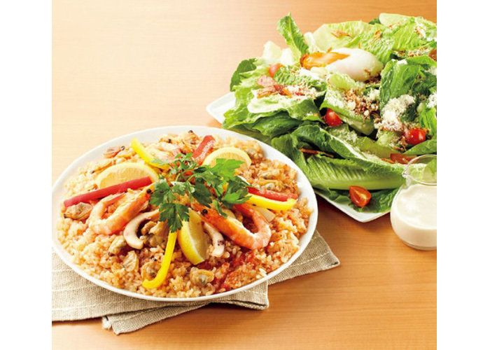 今なら、「海鮮とチキンのパエリア&ロメインレタスのシーザーサラダ」がスペシャルメニューとして登場!