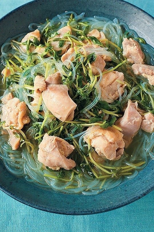 1.春雨は熱湯をかけてもどし、水けをきる。豆苗は根元を切り落とし、長さを半分に切る。