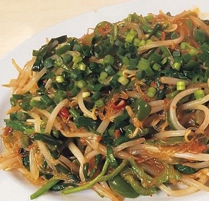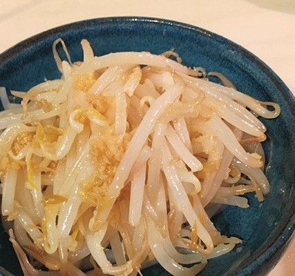 ゆでたもやしを姜葱醤としょうゆであえただけ。香味野菜を刻む手間がないのは、かなりの時短です。豆腐にかけるのもおすすめ!