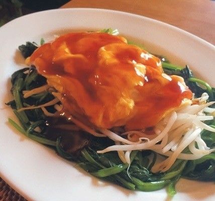 ゆでたもやしとほうれん草に半熟卵をのせ、甘酢あんをかけただけ。味つけに迷ったら、これでよし!豆腐にかけても◎。
